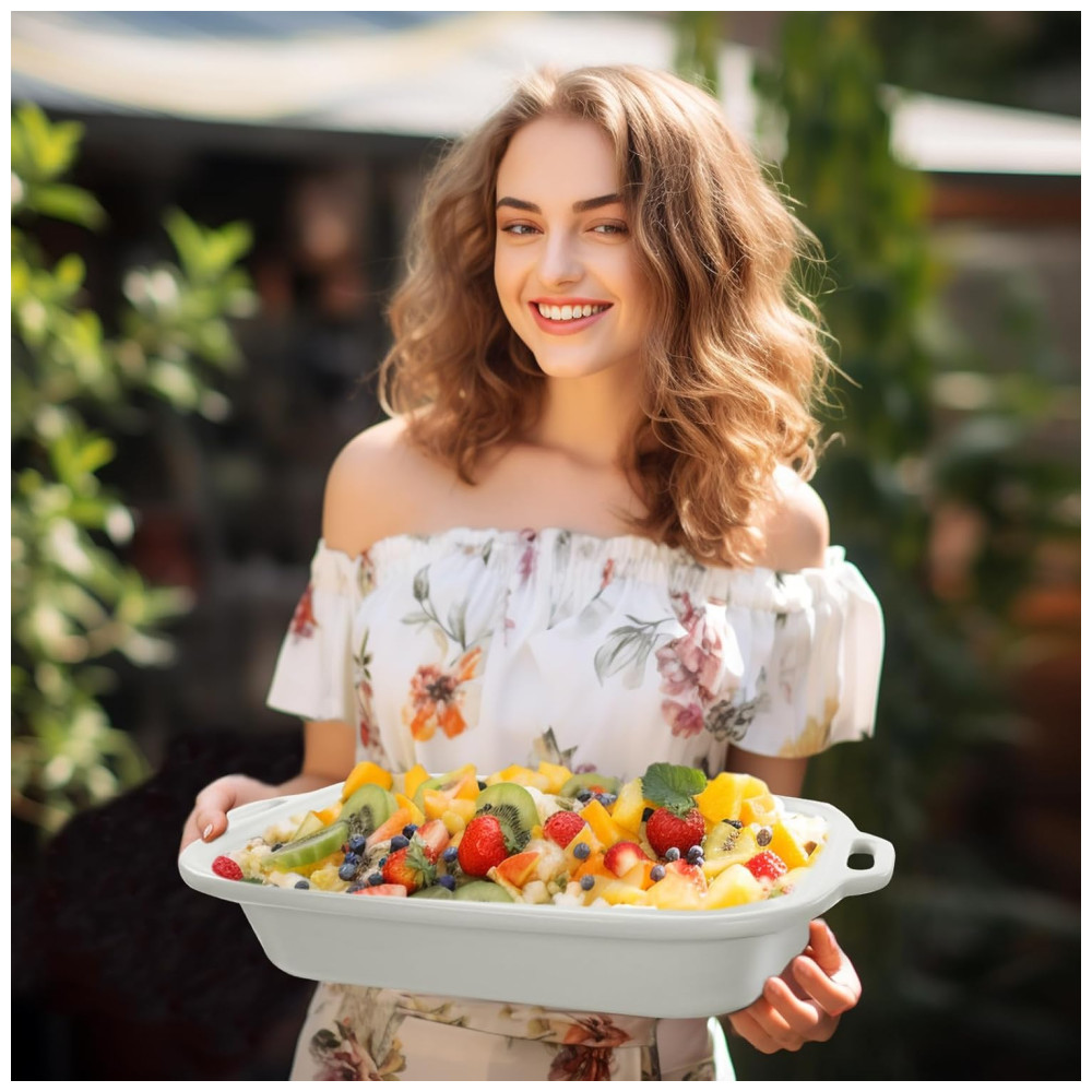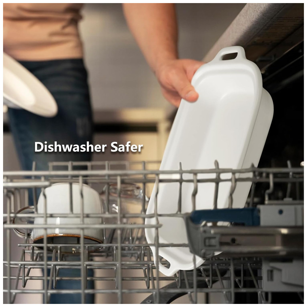 FÁCIL DE SEGURAR: Com seu design de alça dupla, a assadeira retangular é fácil de transportar do forno ou freezer até a mesa. Profundo o suficiente para segurar tudo sem transbordar e você vai adorar como é confortável segurá lo, mesmo quando está cheio de comida bem quente