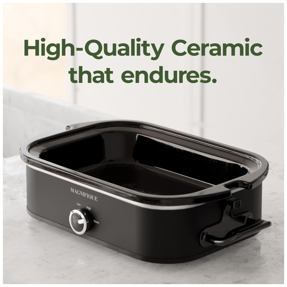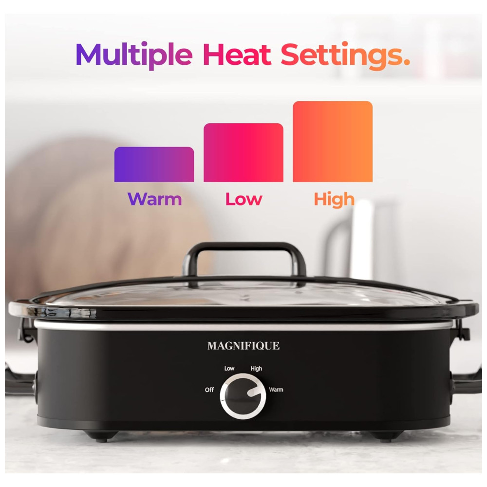 MÚLTIPLAS CONFIGURAÇÕES DE CALOR Selecione entre temperaturas de cozimento Baixa ou Alta. Depende do que você está cozinhando e por quanto tempo deseja cozinhar lentamente. Além disso, use a configuração Keep Warm para manter a comida quente por horas após terminar de cozinhar.