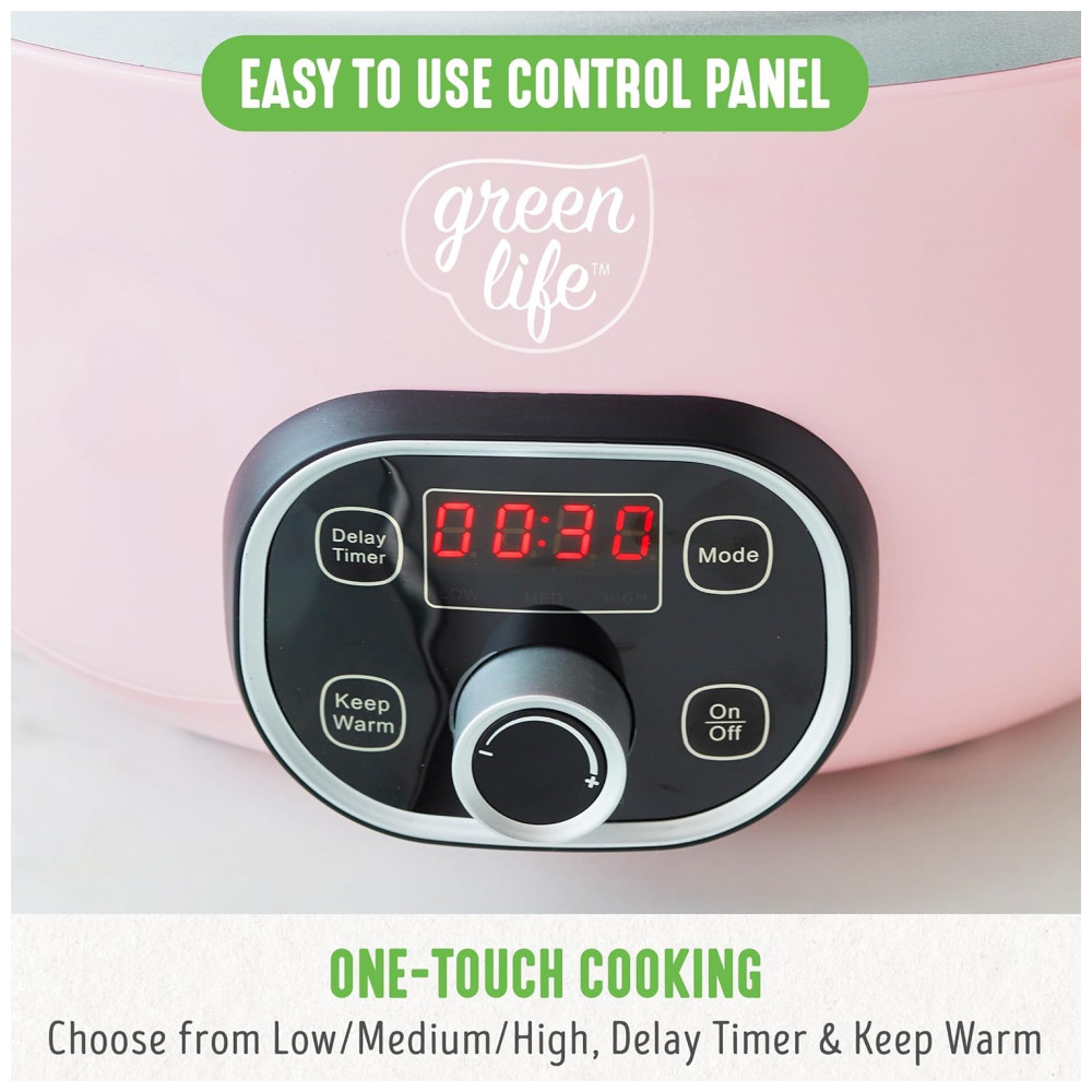 Panela Elétrica Multifuncional 5.7L com Controle de Temperatura 110V 240W GREENLIFE CC004800 001 Rosa