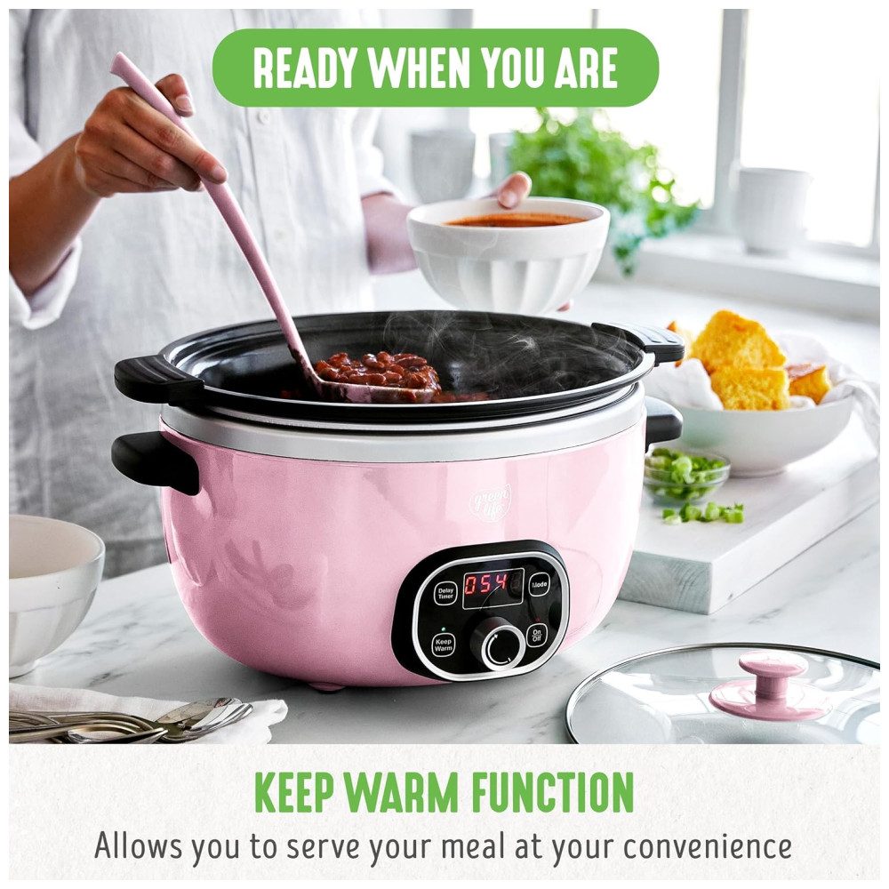 PRONTA QUANDO VOCÊ ESTIVER: Cozinhe de 30 minutos a 20 horas, com programação de até 10 horas e capacidade de manter os alimentos aquecidos por até 4 horas.
