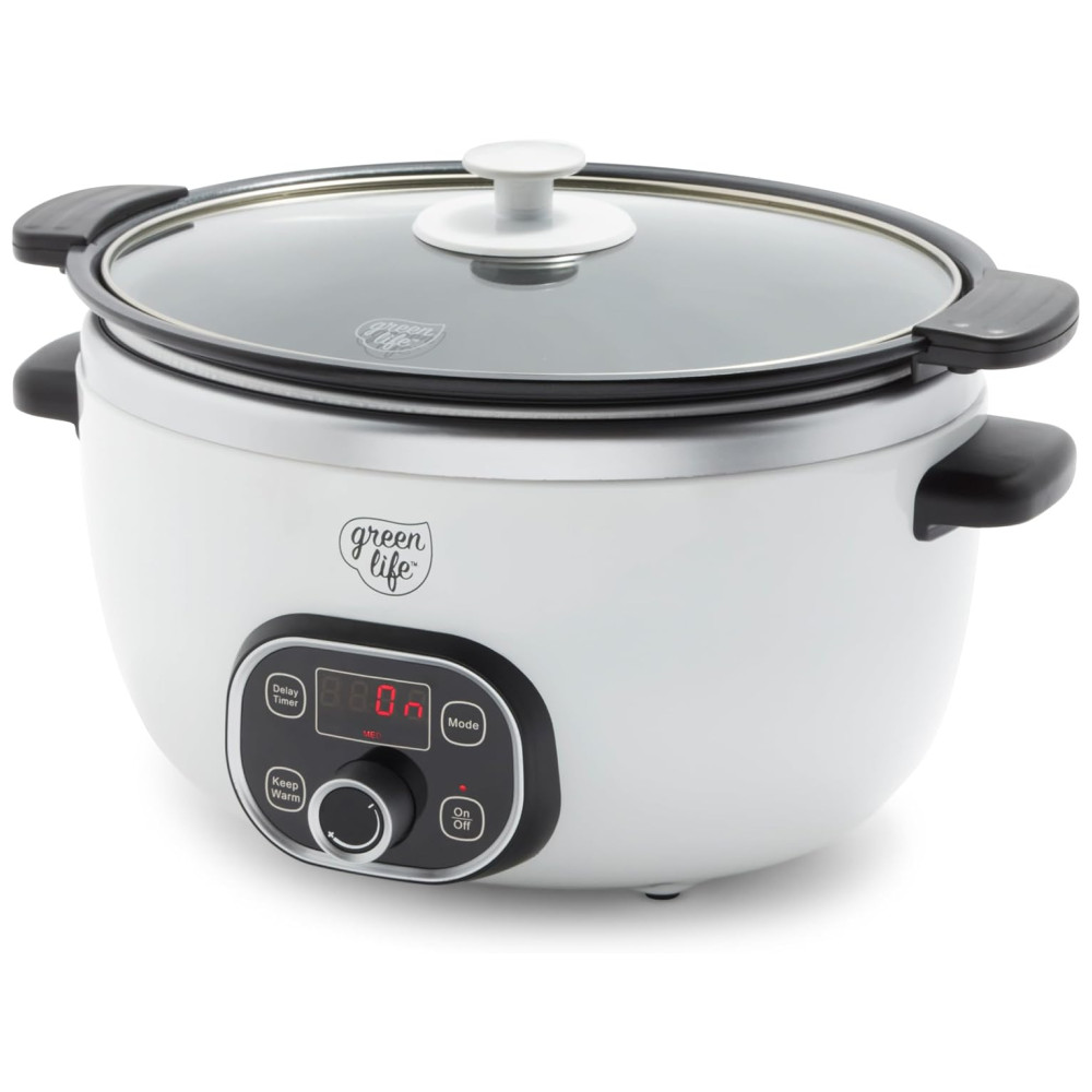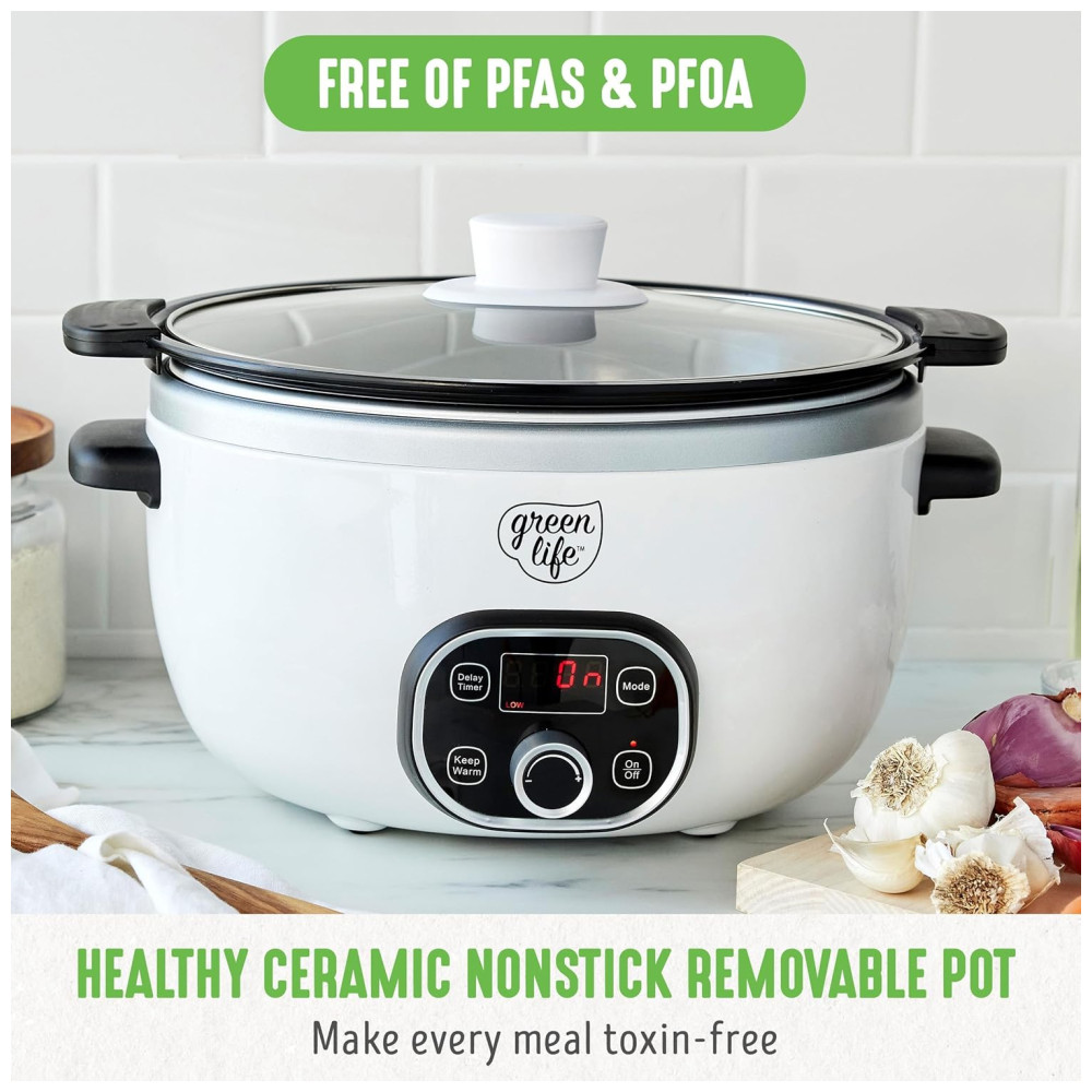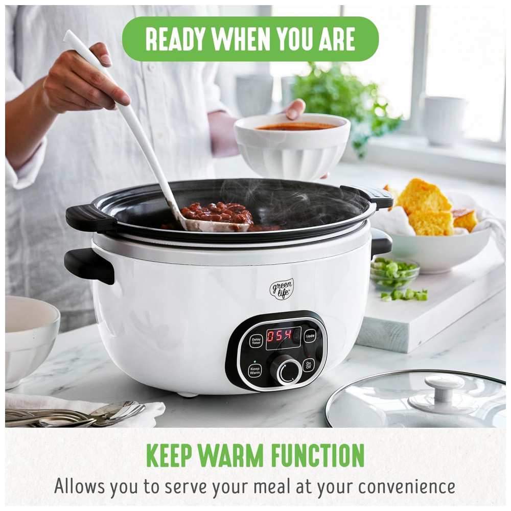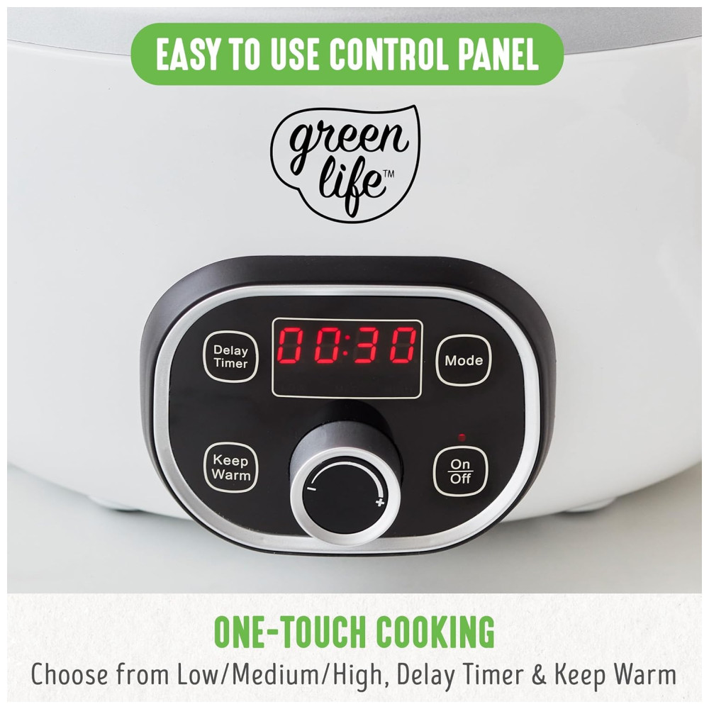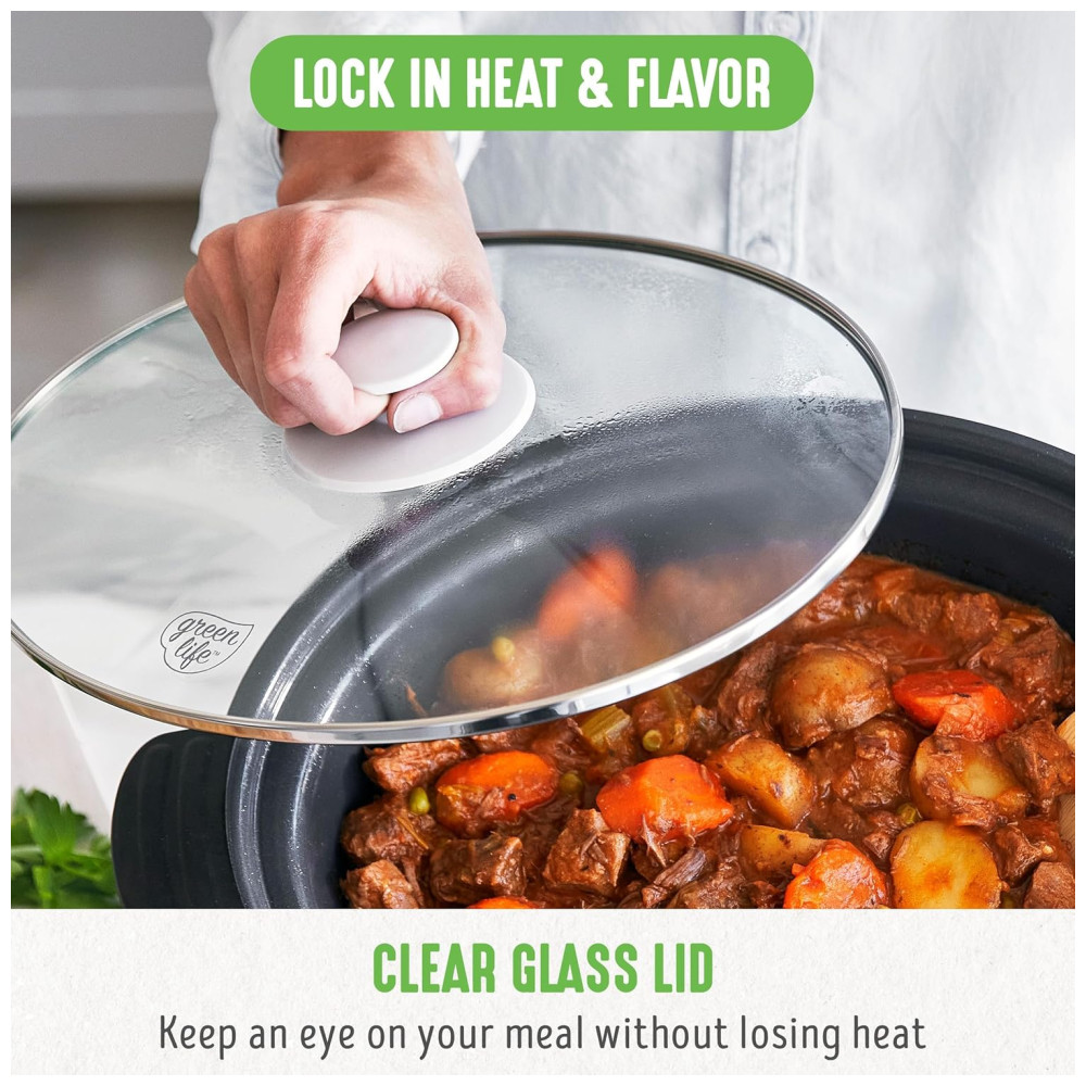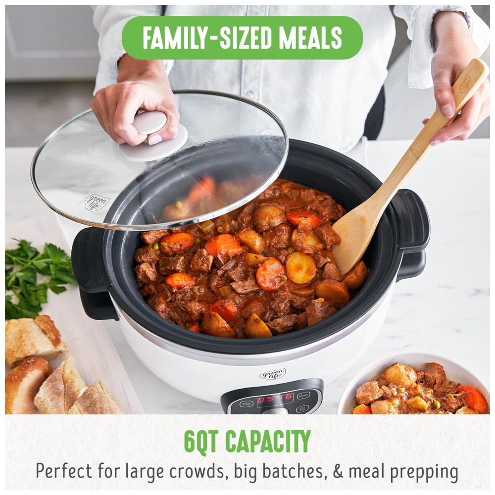 Extragrande e profundo a panela espaçosa com capacidade para 6 quartos deste fogão lento oferece muito espaço para refeições de tamanho familiar