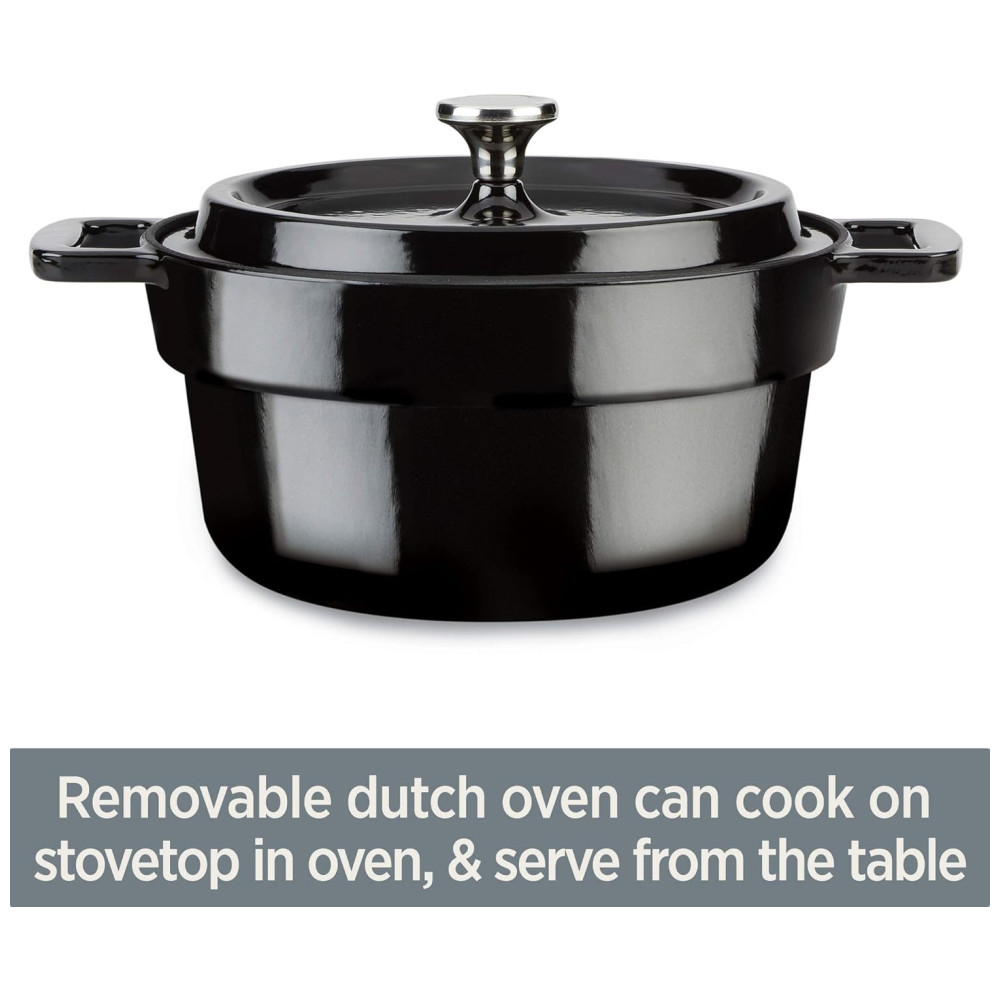 Controle de Temperatura: Mantém sua comida quente automaticamente por até 4 horas após o término do cozimento. A tampa de ferro fundido ajusta-se perfeitamente, retendo calor e umidade, evitando que os alimentos ressequem.