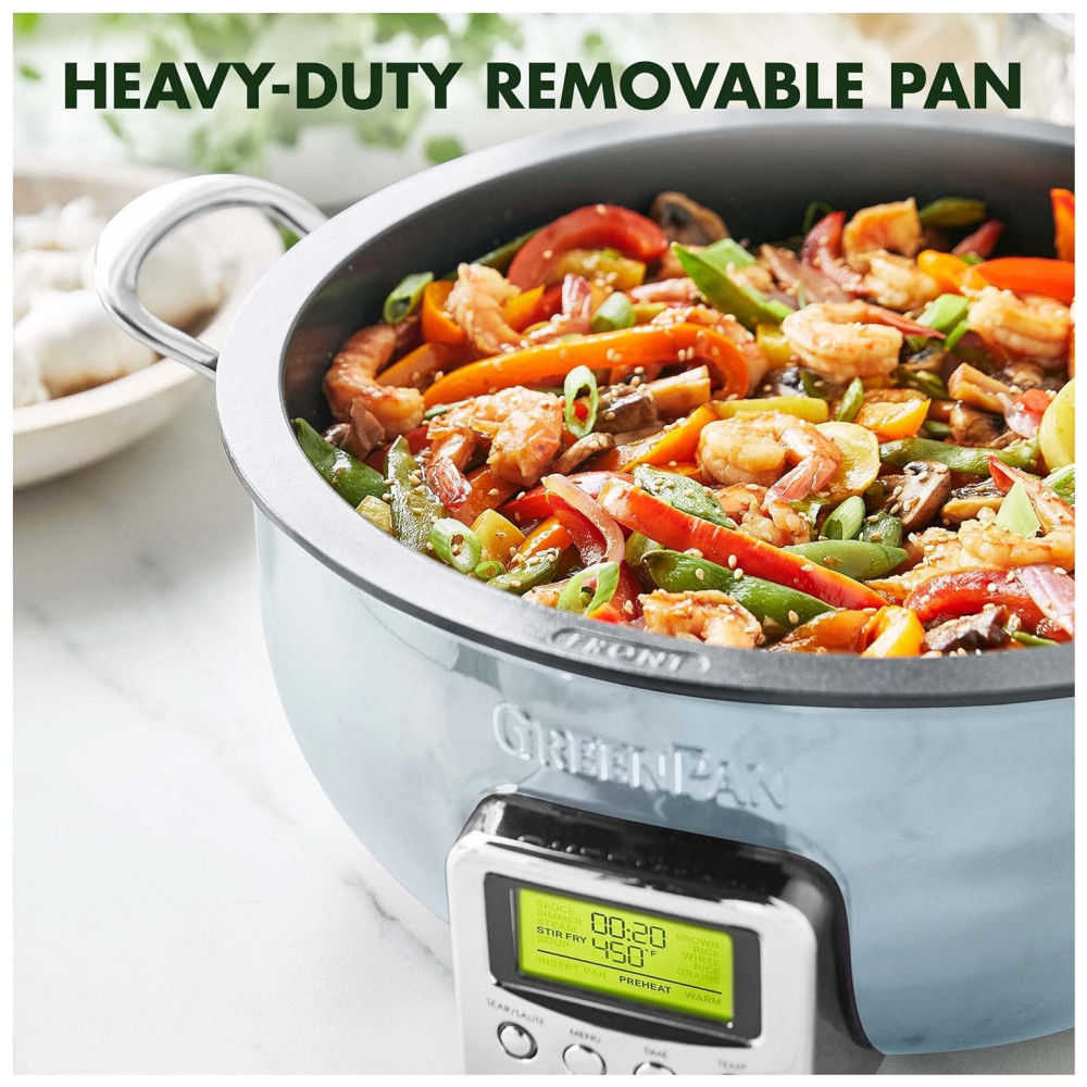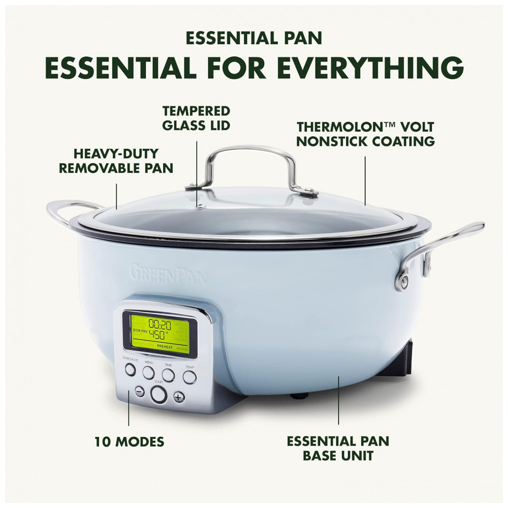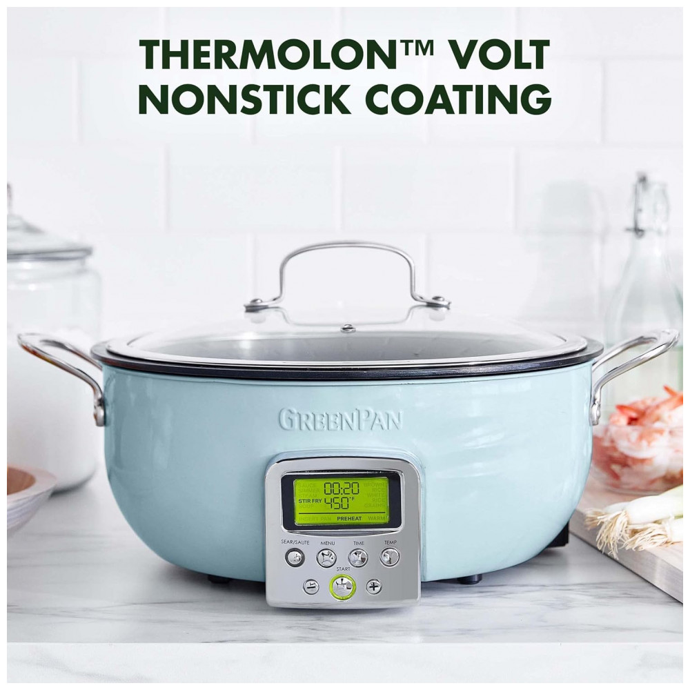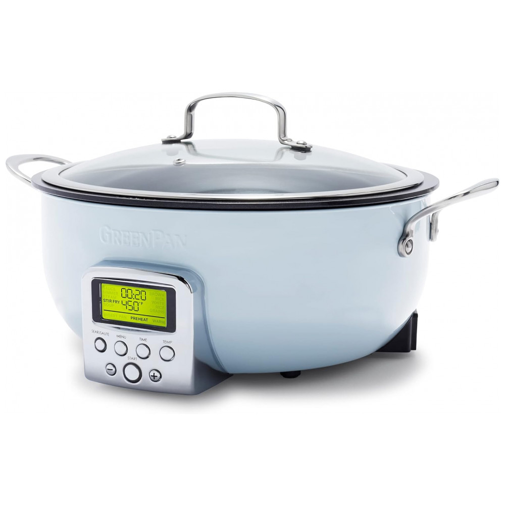 Panela Elétrica Multifuncional 6L de Cerâmica Antiaderente e Tela LED 110V 1800W GreenPan Azul Claro