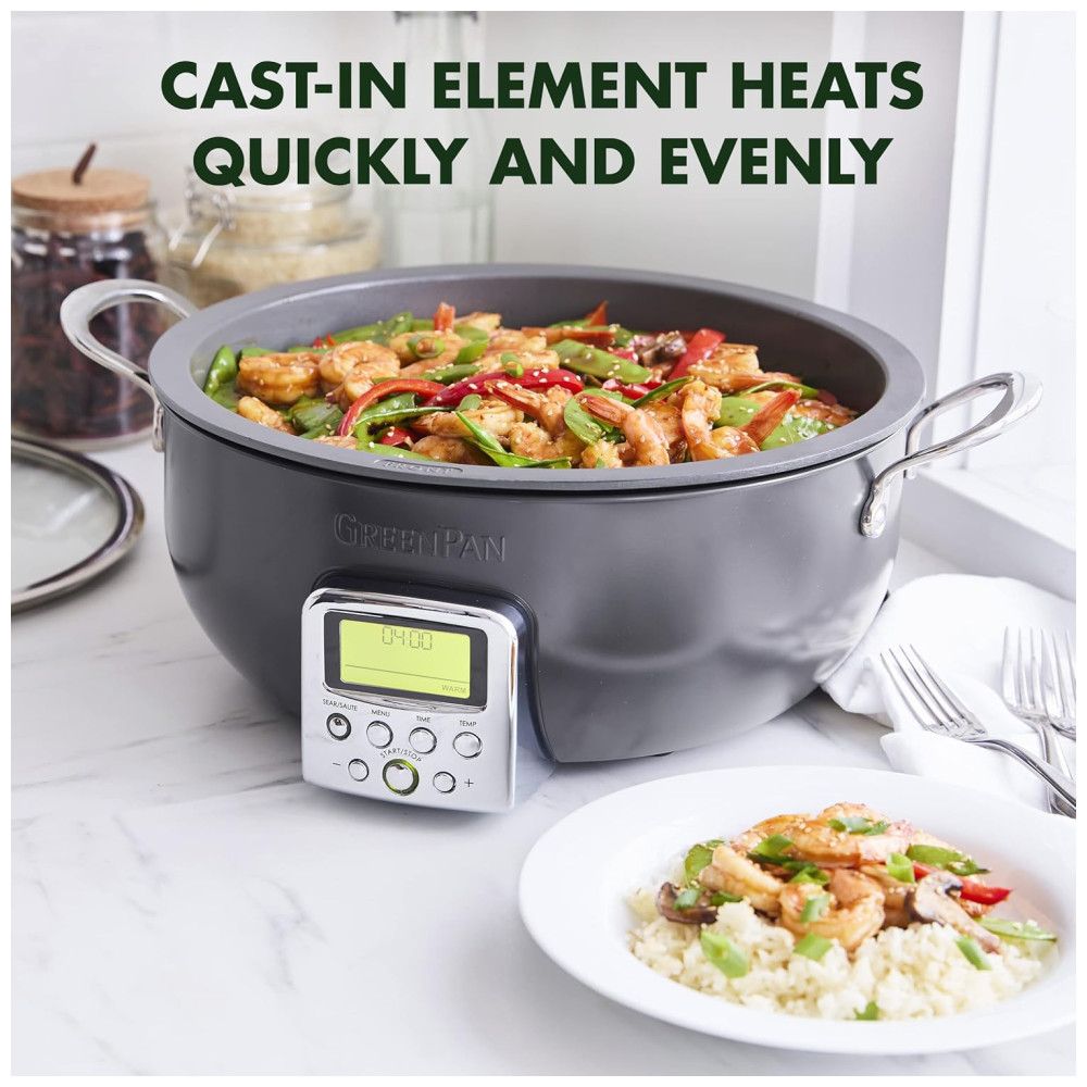 Panela Elétrica Multifuncional GreenPan Elite Essential 57L com 10 Funções Display LED Antiadherente Cerâmico e Tampa de Vidro