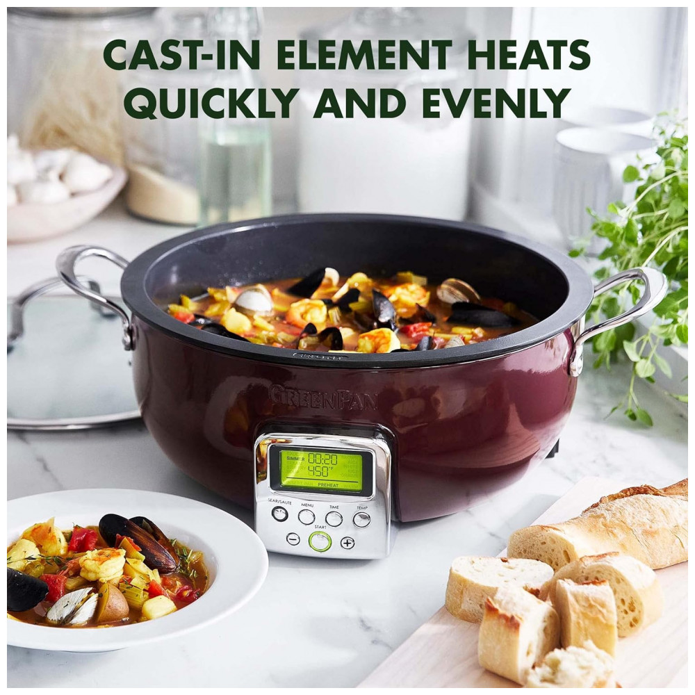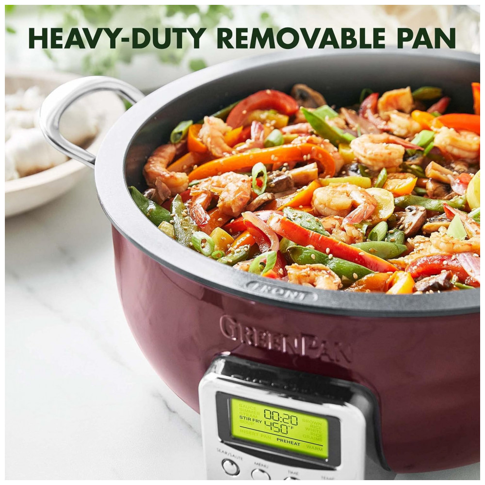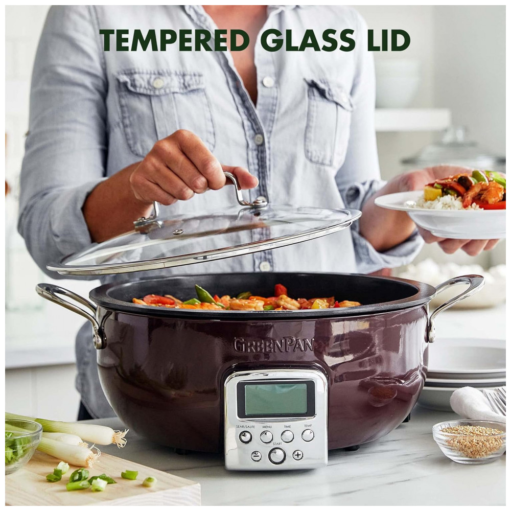 Panela Elétrica GreenPan Essential Smart 6QT 120V com 10 Modos Programáveis Revestimento Cerâmico Antiadherente e Tampa de Vidro – Cor Fantasy Fig