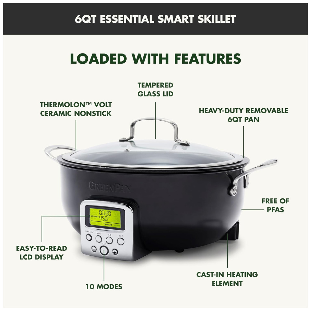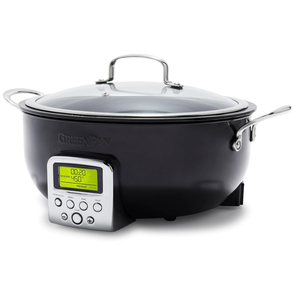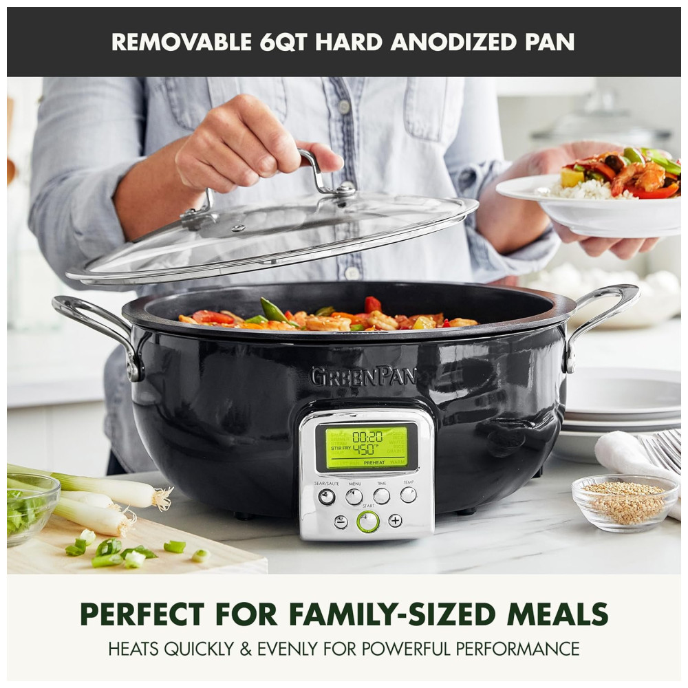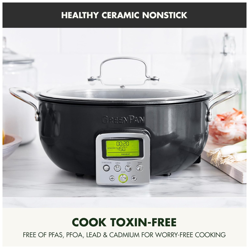 Panela Elétrica Multifuncional 6L de Cerâmica Antiaderente e Tela LED 110V 1800W GreenPan Preta