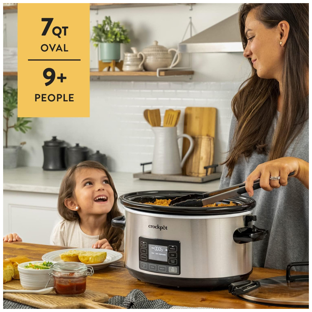 Grande Capacidade: Com uma tigela de 6,7 litros, a Crock-Pot serve facilmente 7 ou mais pessoas, sendo ideal para famílias grandes ou encontros.