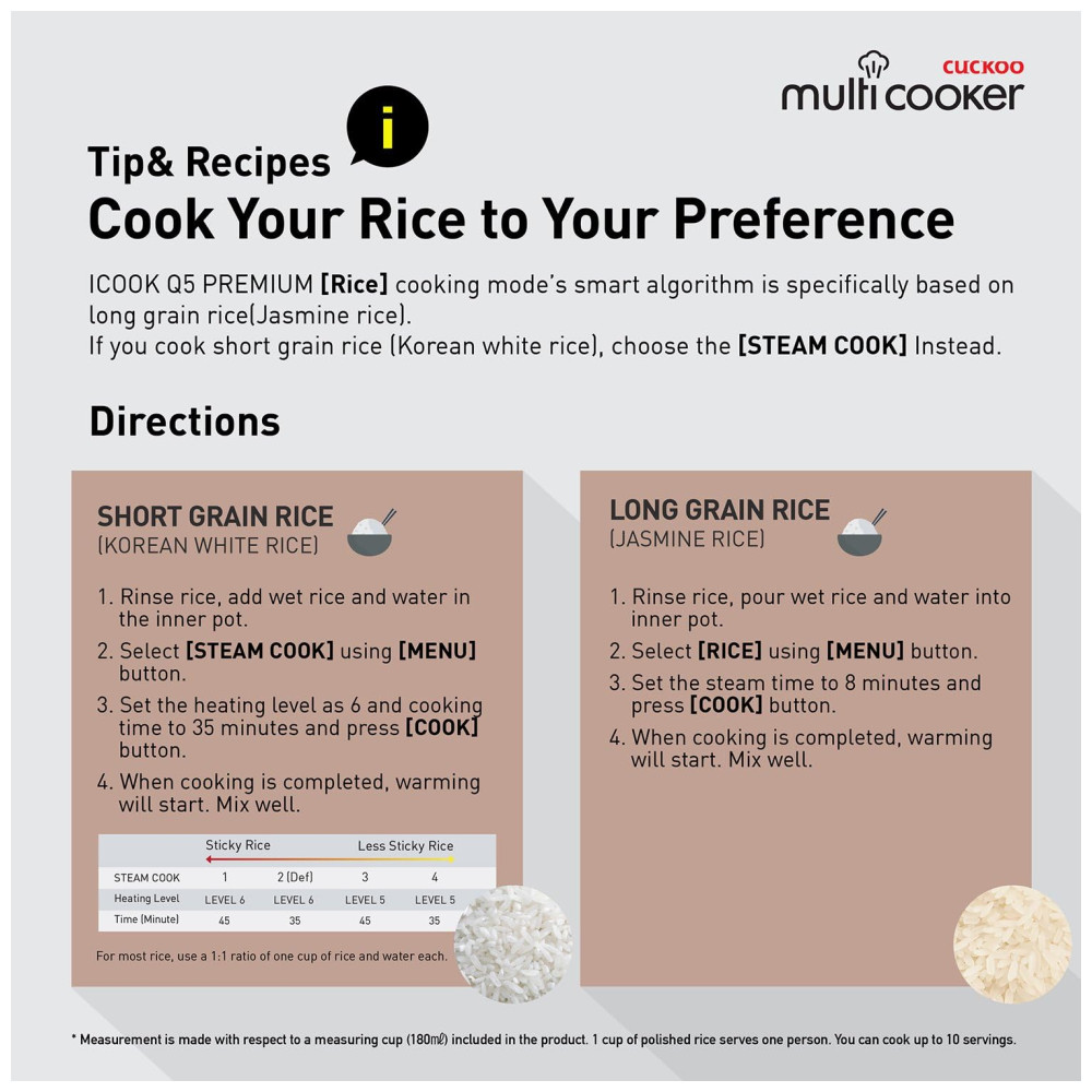 Eu cozinho modos de cozimento Q5 premium arroz O algoritmo inteligente é baseado especificamente em arroz misto de grão longo e grão curto. Encontre detalhes abaixo.