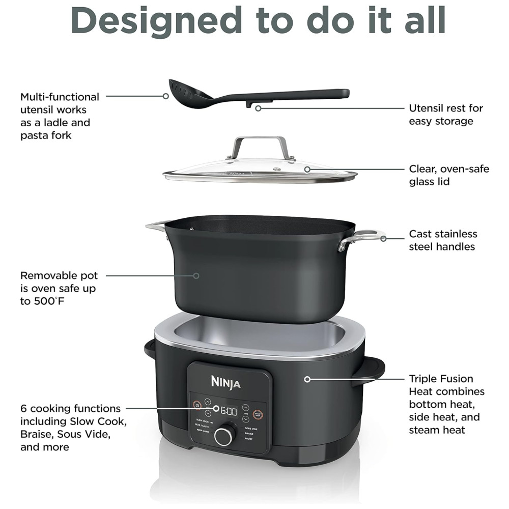 Com o Multi-Cooker Ninja MC1010 Foodi PossibleCooker PLUS de 8 Litros, você transforma sua cozinha em um ambiente mais prático e eficiente, ideal para todas as suas necessidades culinárias!