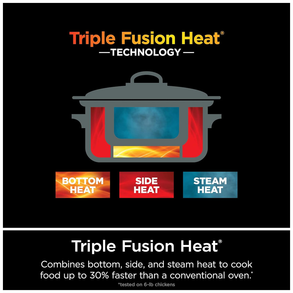 Tecnologia de Calor Triplo Fusion: Cozinhe até 30% mais rápido do que em fornos convencionais, combinando calor na base, nas laterais e vapor para um cozimento mais eficiente.