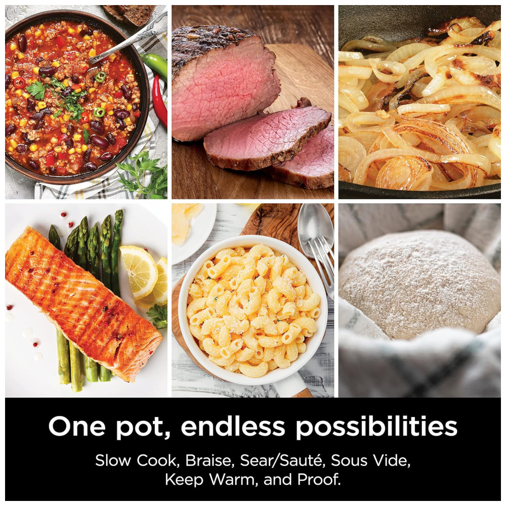 6 Funções de Cozimento: Cozinhe lentamente, sele/refogue, mantenha aquecido, prepare sous vide, brase e faça a prova de massas com facilidade.