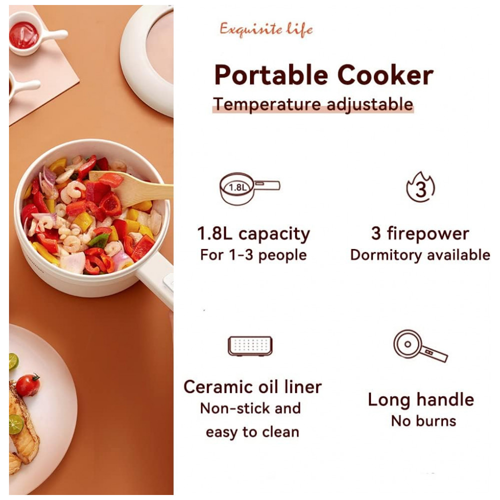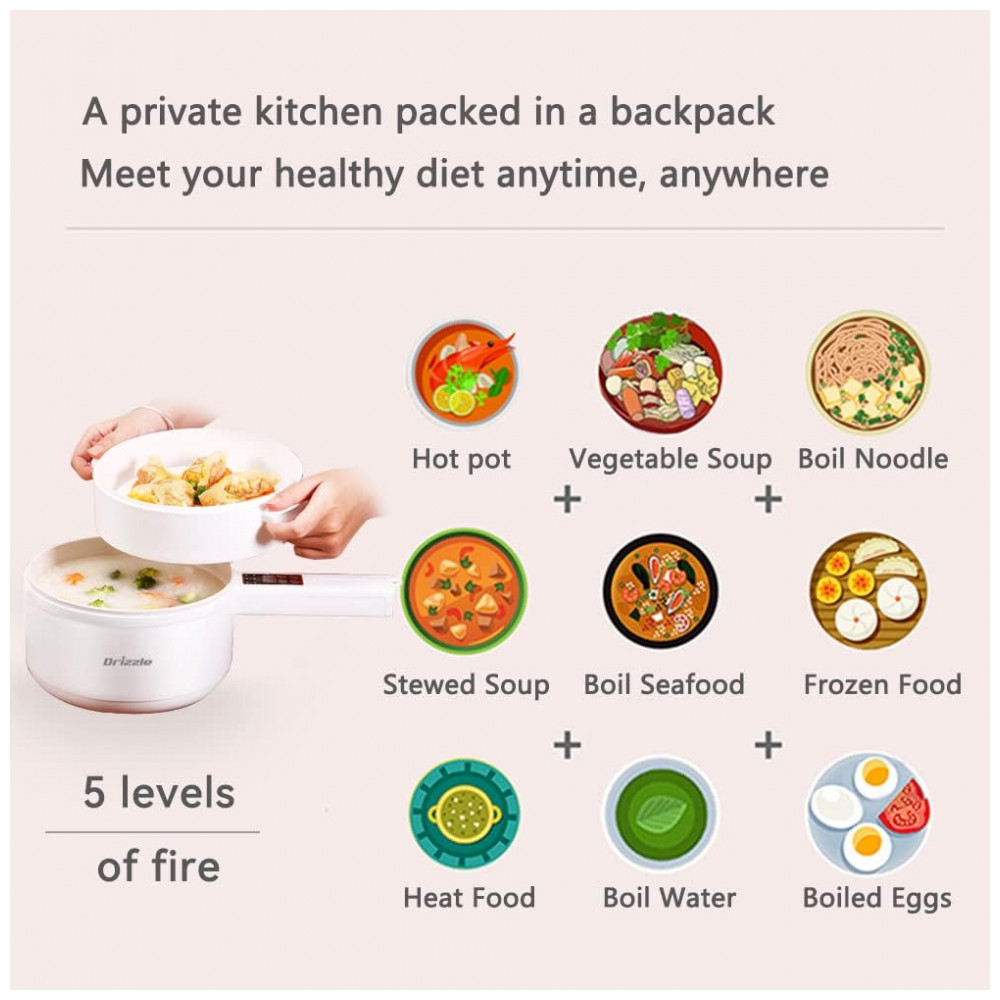 Com a Panela Elétrica Multifuncional Drizzle de 1,8 Litros, suas refeições serão preparadas de forma prática, rápida e segura, onde quer que você esteja!