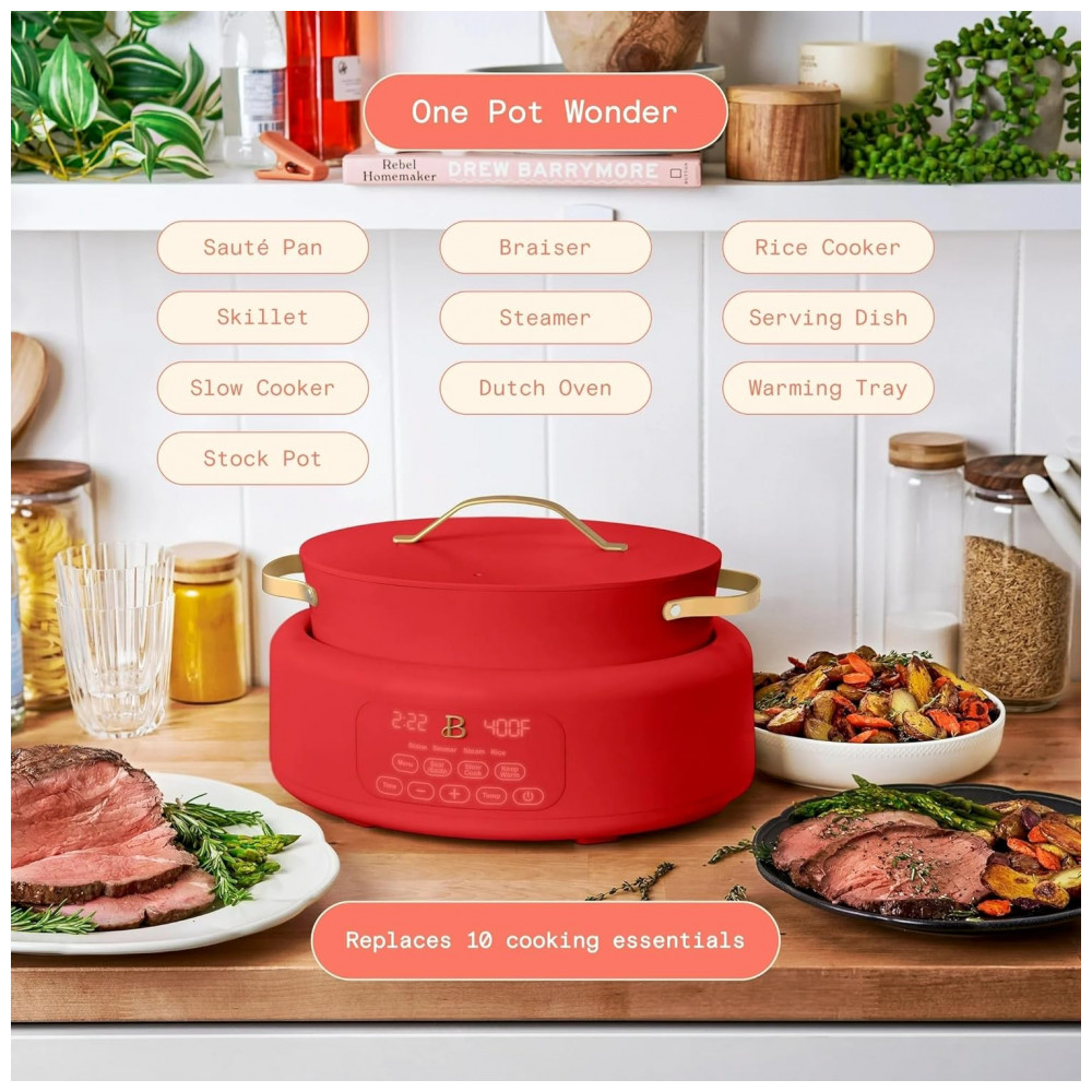 Panela elétrica multifunções Beautiful 10 em 1 6L vermelha 1500W 110V painel touch