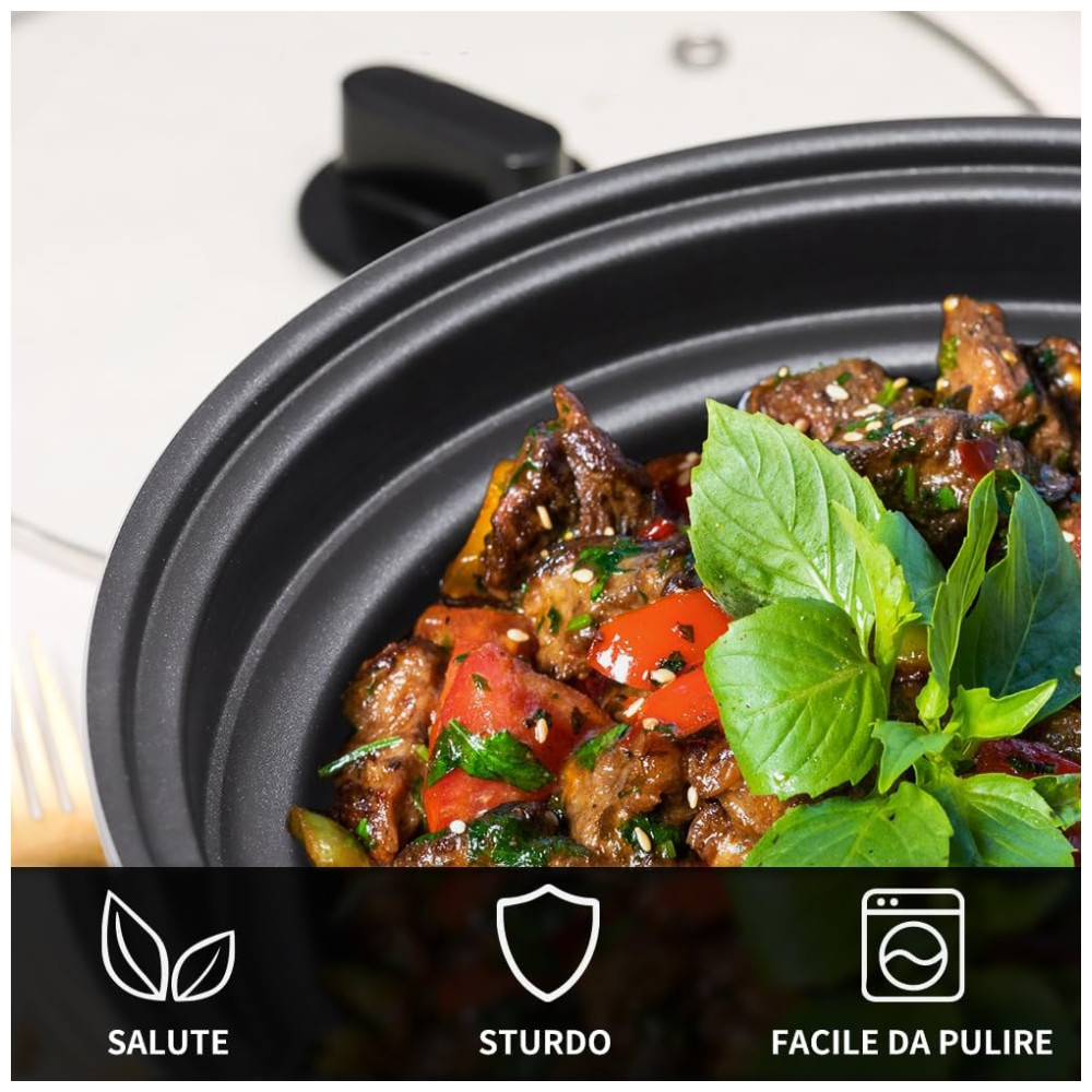 Esta panela multifuncional é a combinação perfeita de praticidade, segurança e estilo para a sua cozinha.