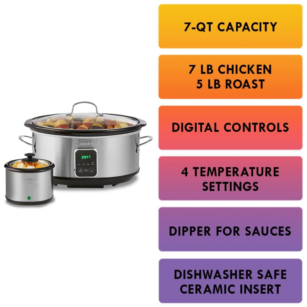 Conheça a Panela de Cozimento Lento Programável Kenmore de 6,6 Litros com Aquecedor de Molho Dipper – A Solução Perfeita para Refeições Deliciosas e Práticas!
