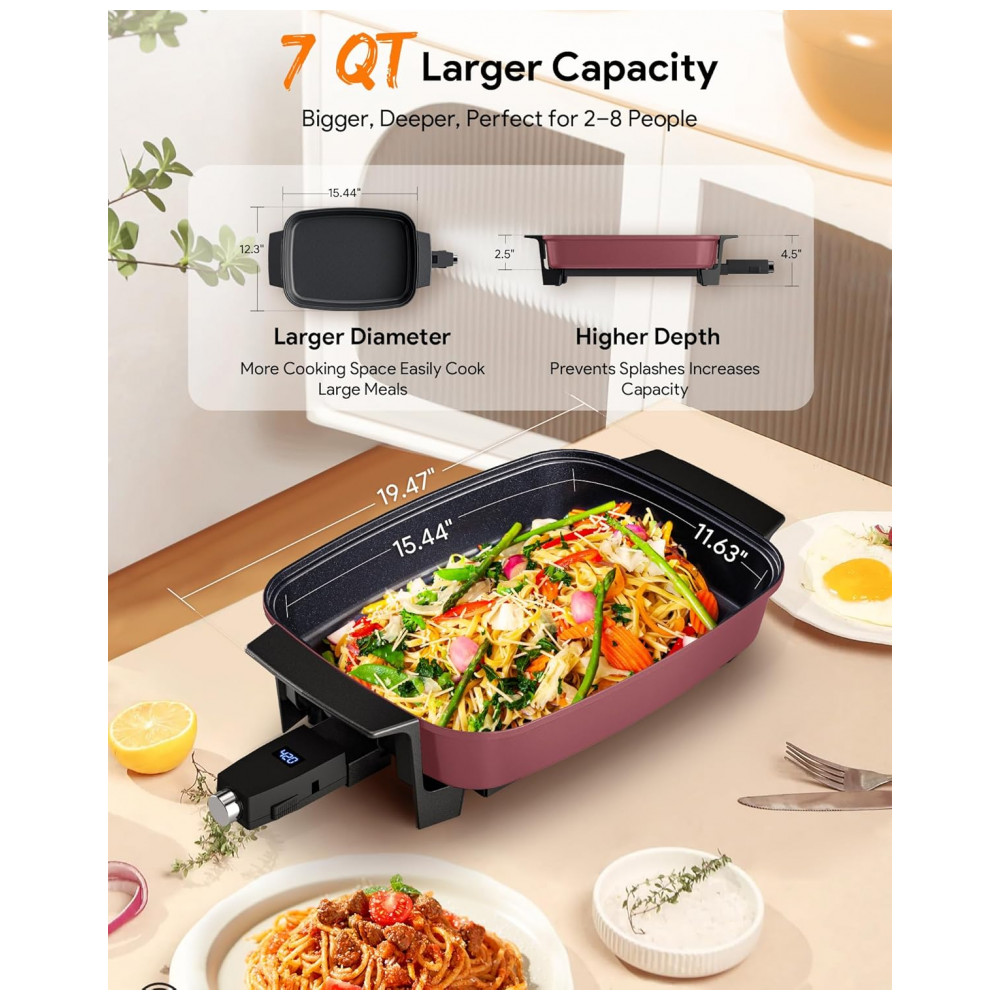 Panela Elétrica Skillet 7L Nuwave Medley XL Canela Digital Antiaderente Cerâmica PFAS Free com Tampa de Vidro 110V