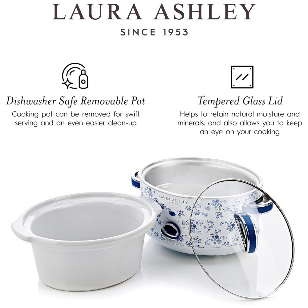 Panela Elétrica Slow Cooker Laura Ashley 64L Inox Branco com Estampa Floral 3 Temperaturas Cuba Cerâmica VQ-SLWC6L-LACR-US 110V