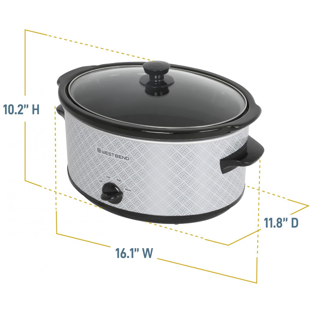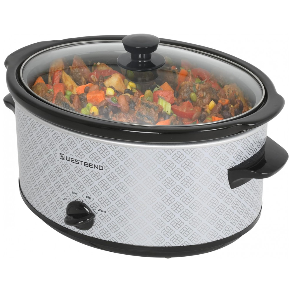 Panela elétrica slow cooker West Bend 6L cerâmica oval prata tampa de vidro 3 temperaturas 330W 110V
