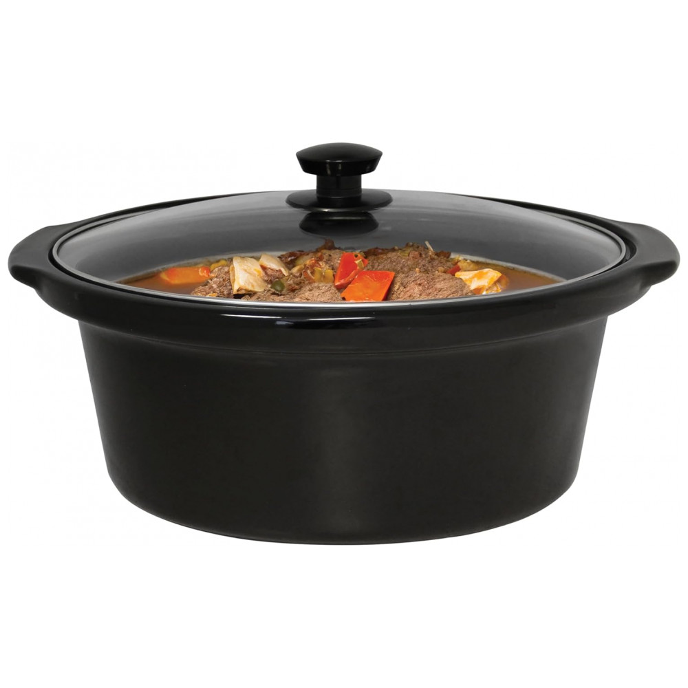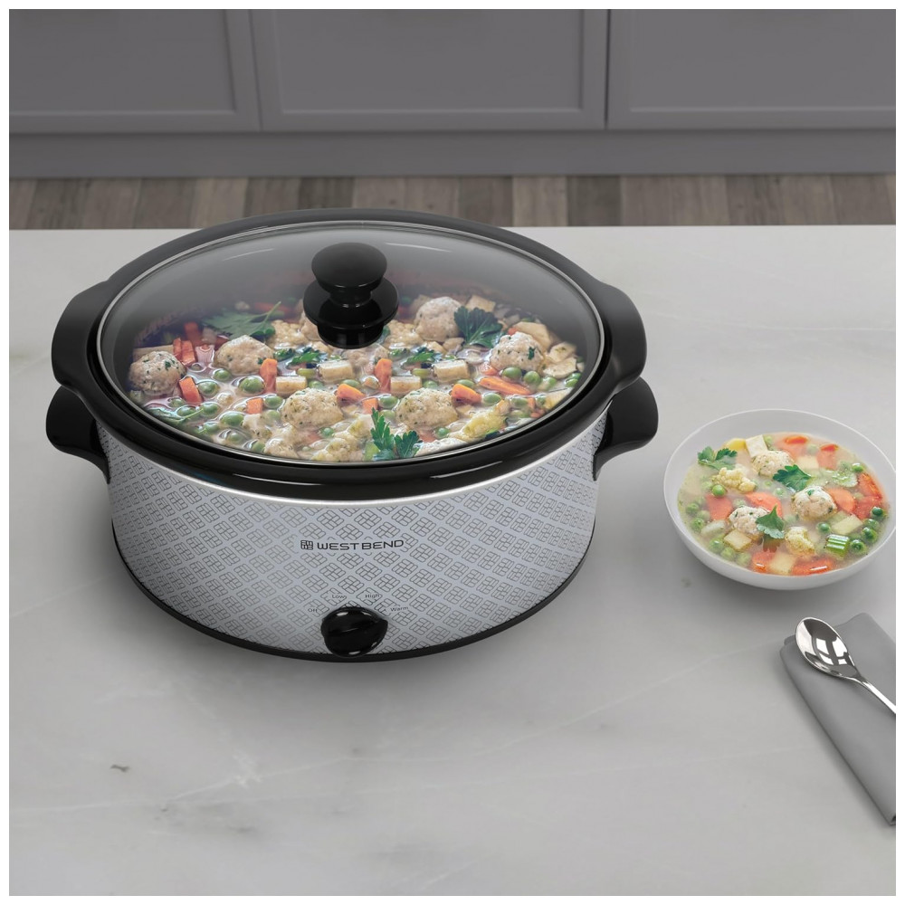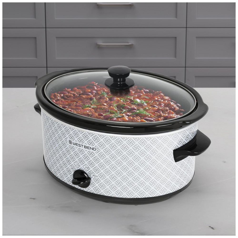 A panela elétrica de cozimento lento West Bend com capacidade de 6 litros foi desenvolvida para preparo de refeições em baixa temperatura em uso residencial, atendendo porções para cerca de sete ou mais pessoas. A cuba interna em cerâmica oval removível acomoda cortes de carne, sopas e ensopados, enquanto a tampa em vidro temperado permite visualizar o cozimento sem necessidade de abrir o equipamento com frequência.