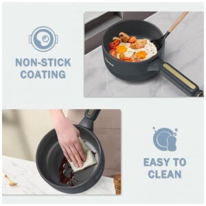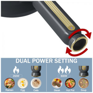 Cozinhe Abaixo e Cozinhe no Vapor Acima! Esta panela elétrica de 2 litros apresenta um design versátil para fritar, refogar ou cozinhar abaixo enquanto cozinha no vapor acima simultaneamente. A alça estendida de 19cm proporciona uma pegada confortável, reduzindo o esforço durante o uso. Observação: o produto não inclui uma espátula. Configuração de Potência Dupla: A panela elétrica da TOPWIT vem com duas configurações de potência. A baixa potência de 250W é ideal para fritar ovos, ferver ramen e cozinhar aveia. A alta potência de 600W é para grelhar bifes, preparar hot pot e refogar legumes. Pode substituir vários fogões e utensílios de cozinha tradicionais, trazendo mais conveniência para a sua vida. Panela Portátil para Cozinhar: Compacta e leve, esta panela é perfeita para dormitórios, cozinhas pequenas, escritórios ou até mesmo para vida em van. Seu design multifuncional substitui vários utensílios de cozinha, economizando espaço e tempo. Revestimento Antiaderente Saudável: A panela possui um revestimento antiaderente aprimorado em sua superfície interna, livre de PFOA e BPA, evitando que os alimentos grudem e garantindo uma limpeza fácil com apenas água e uma esponja. Proteção Dupla de Segurança: Esta frigideira elétrica aquece os alimentos rapidamente e de forma uniforme com seu elemento de aquecimento circular e superfície antiaderente, evitando queimaduras. Possui também proteção contra superaquecimento e queima a seco para mantê-la segura.