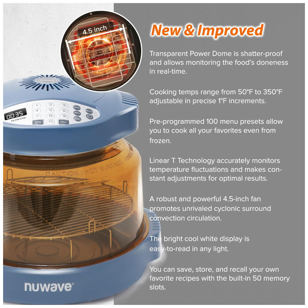Panela Forno Infravermelho Elétrico com Temperaturas Ajustáveis 100 Predefinições e 50 Memória 110V 1500W Nuwave Azul