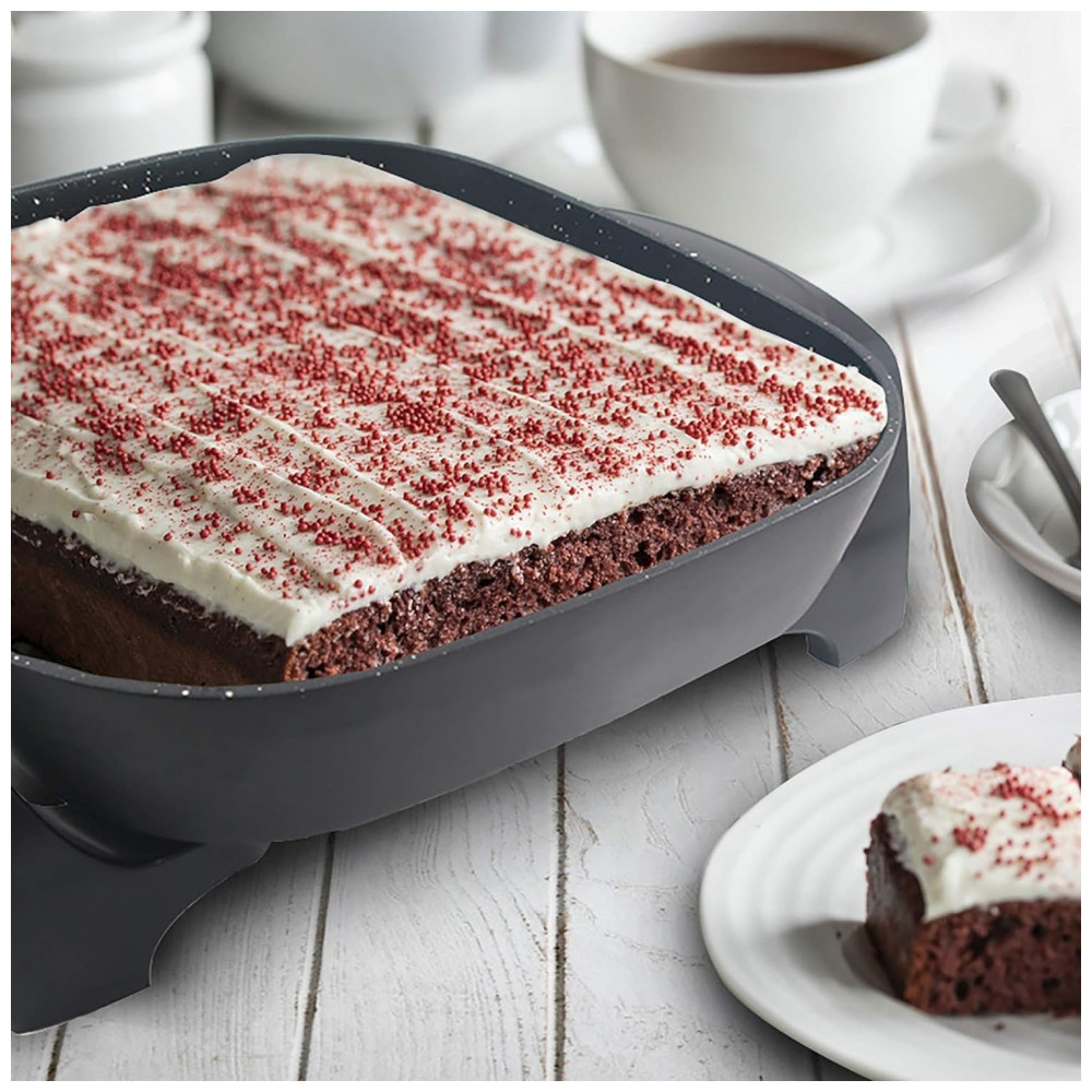 Preserve o Sabor: A tampa de vidro temperado permite trancar os sabores e a umidade. A grande panela com dimensões de 30 cm x 30 cm x 8 cm permite fritar frango para toda a família ou preparar pratos como lasanhas profundas com facilidade.