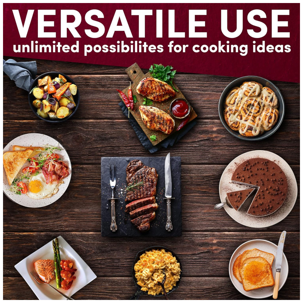 Facilite suas Refeições: Com capacidade para 7,1 litros, essa frigideira é perfeita para preparar panquecas fofas, sanduíches gourmet e legumes salteados saborosos, servindo de 6 a 8 pessoas.