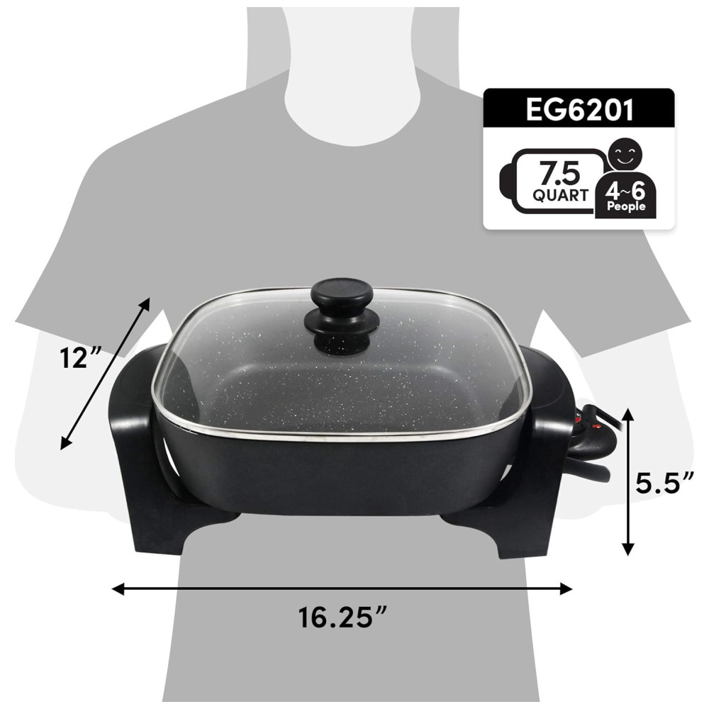 Panela Frigideira Elétrica Antiaderente 7L Multifuncional 1200W 110V ELITE GOURMET EG6201 Preto