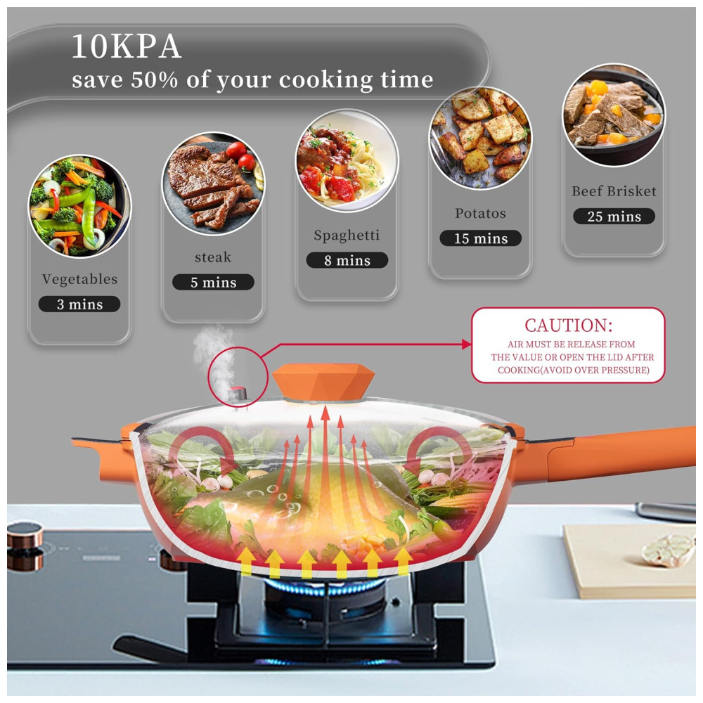 Característica especial compatível com fogão a gás, seguro para forno, remova a alça antes de colocá lo no forno, antiaderente e fácil de limpar, compatível com fogão de indução
