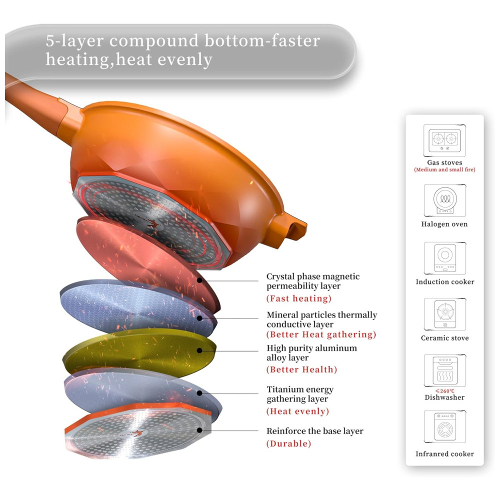Característica especial compatível com fogão a gás, seguro para forno, remova a alça antes de colocá lo no forno, antiaderente e fácil de limpar, compatível com fogão de indução Veja mais