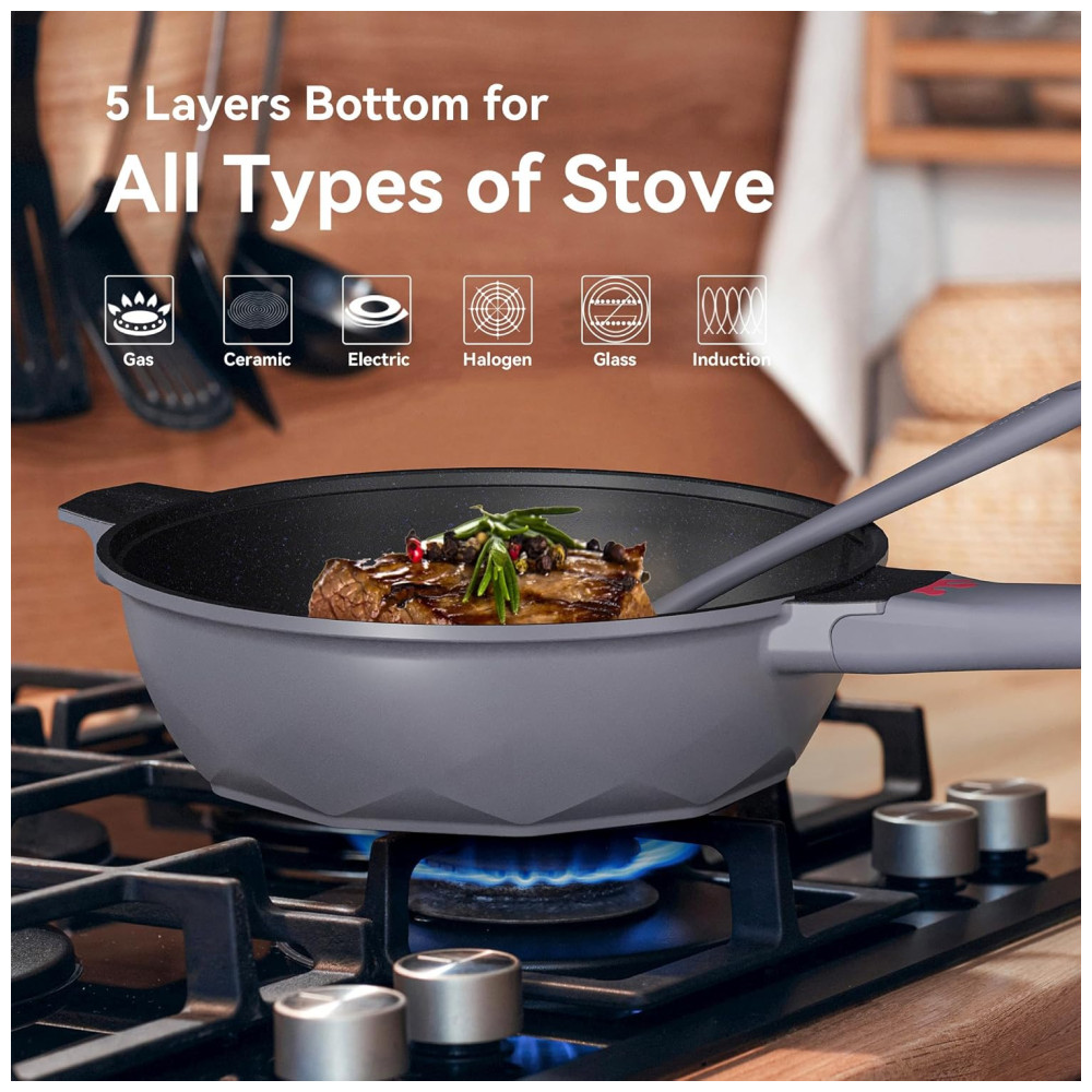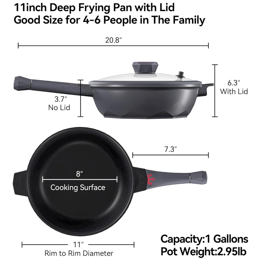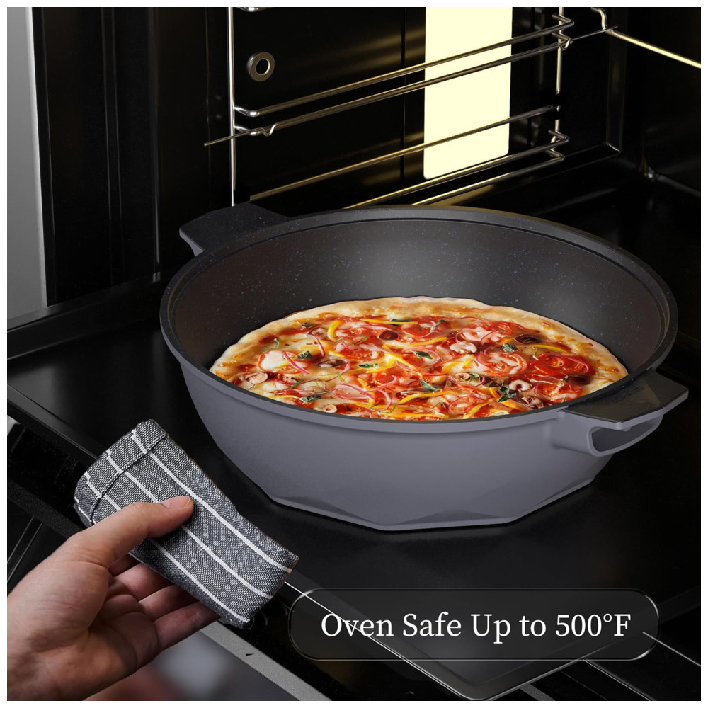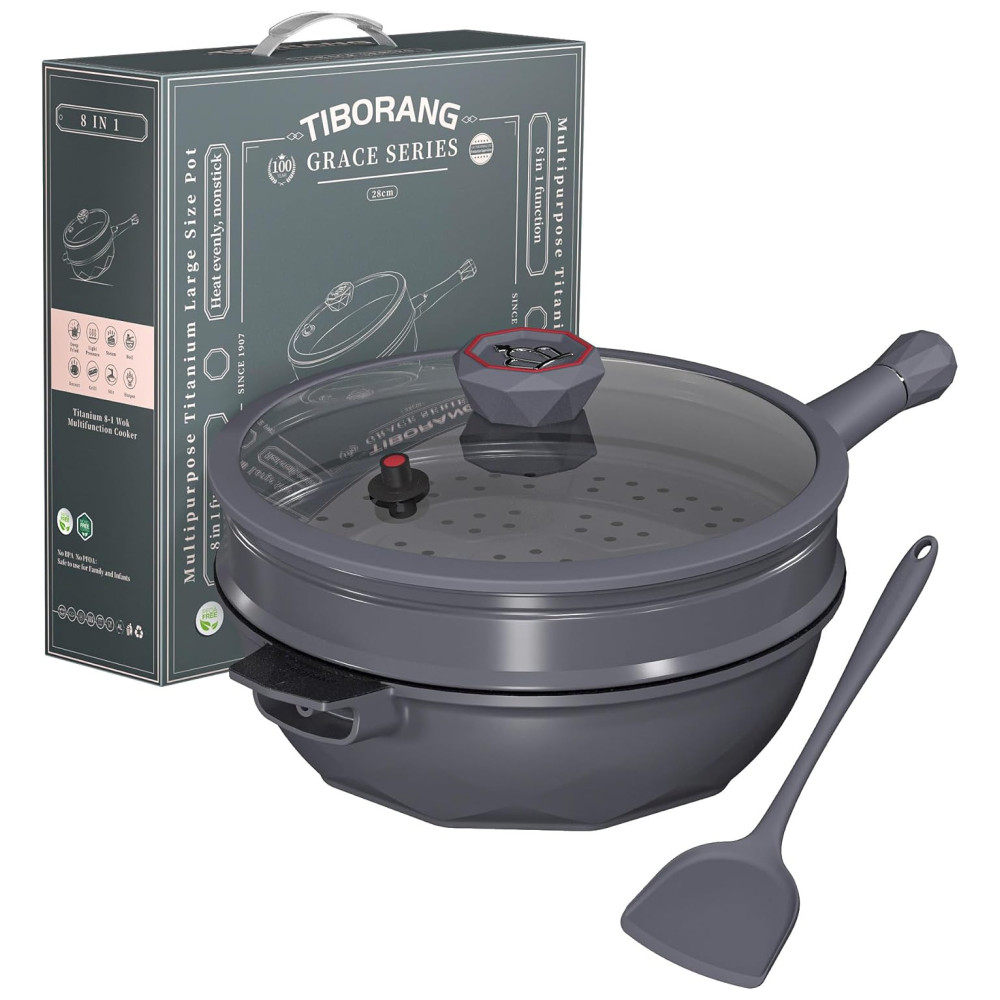 Panela Funda com Tampa de Vidro Cabo Frio Grelha a Vapor Livre de PFOA Segura para Lava-louças e Forno TIBORANGCarvão