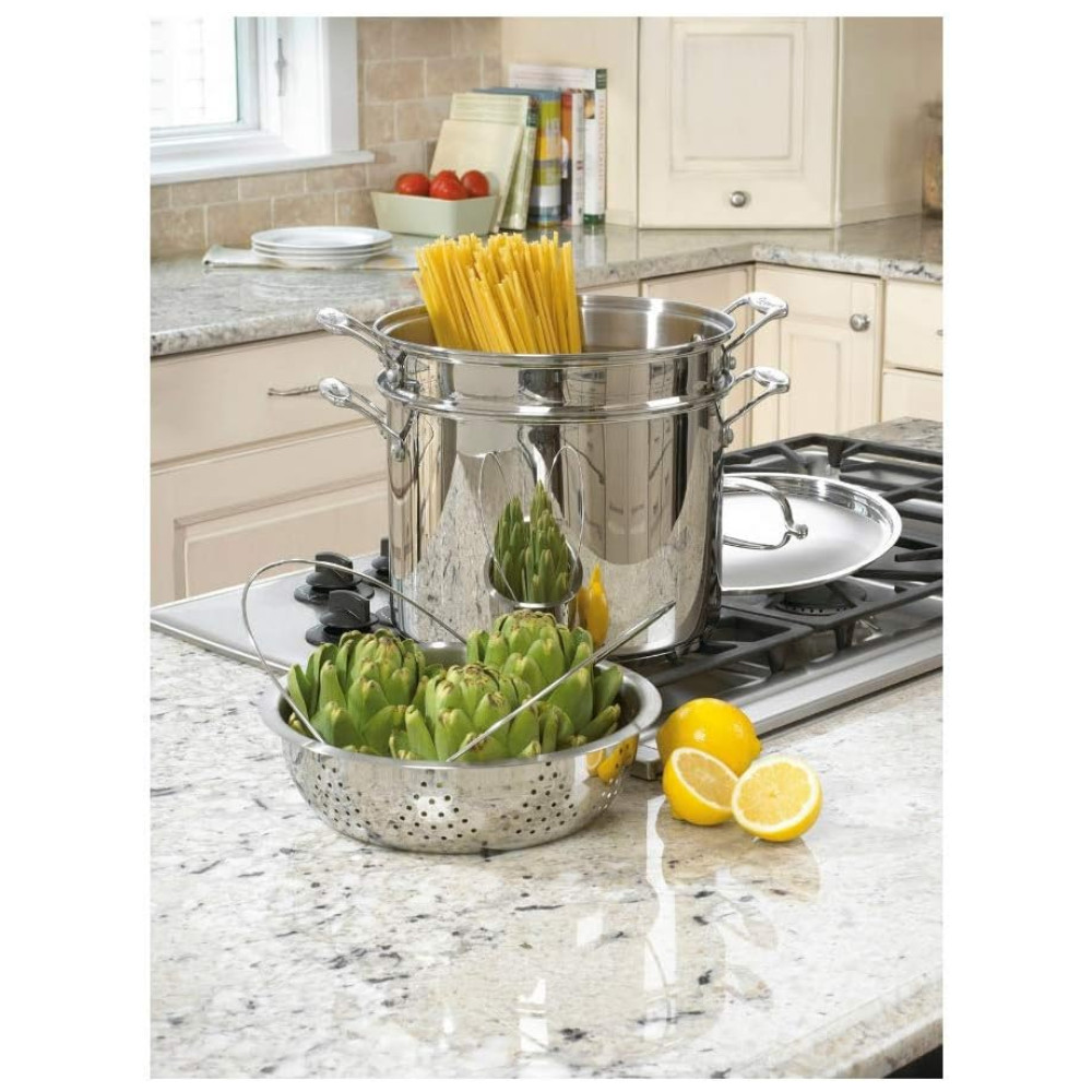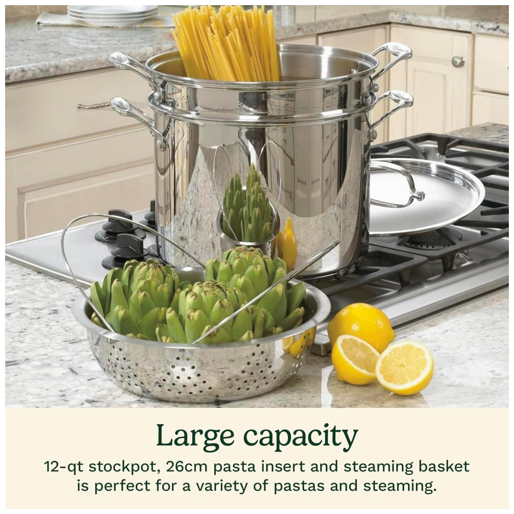 Panela para Massas 113 Litros em Aço Inoxidável 4 Peças Acabamento Espelhado Cuisinart 77-412P1 Prata