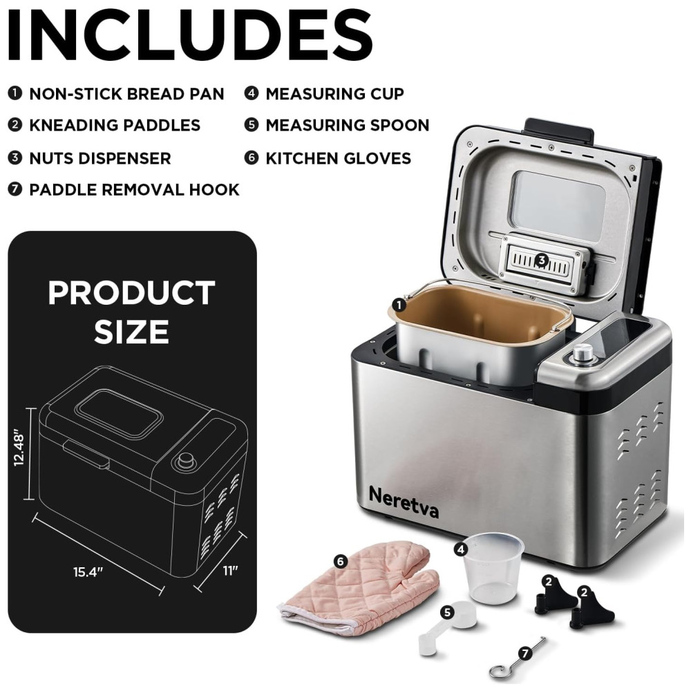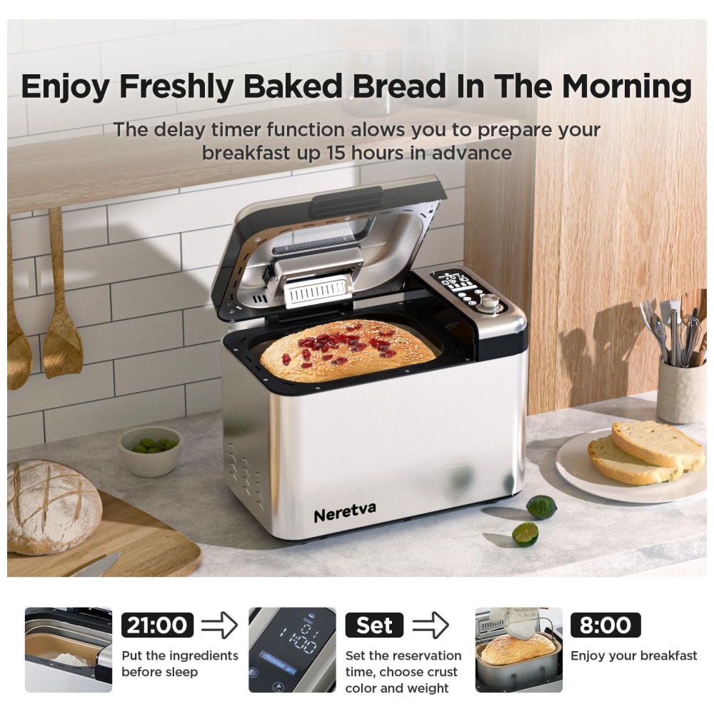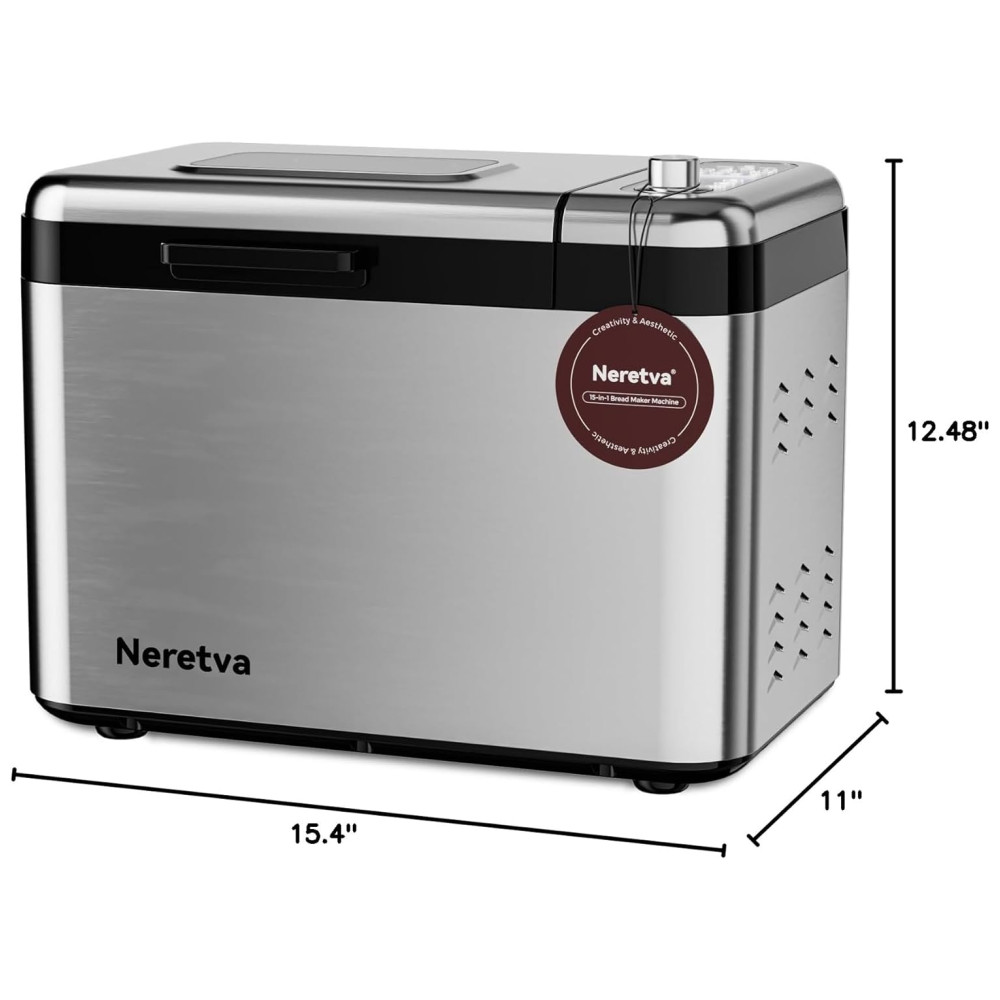Panificadora Automática 15 em 1 com Capacidade de 15 kg 3 Tamanhos de Pão e 3 Cores da Crosta 110V Neretva Prata