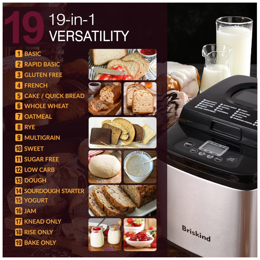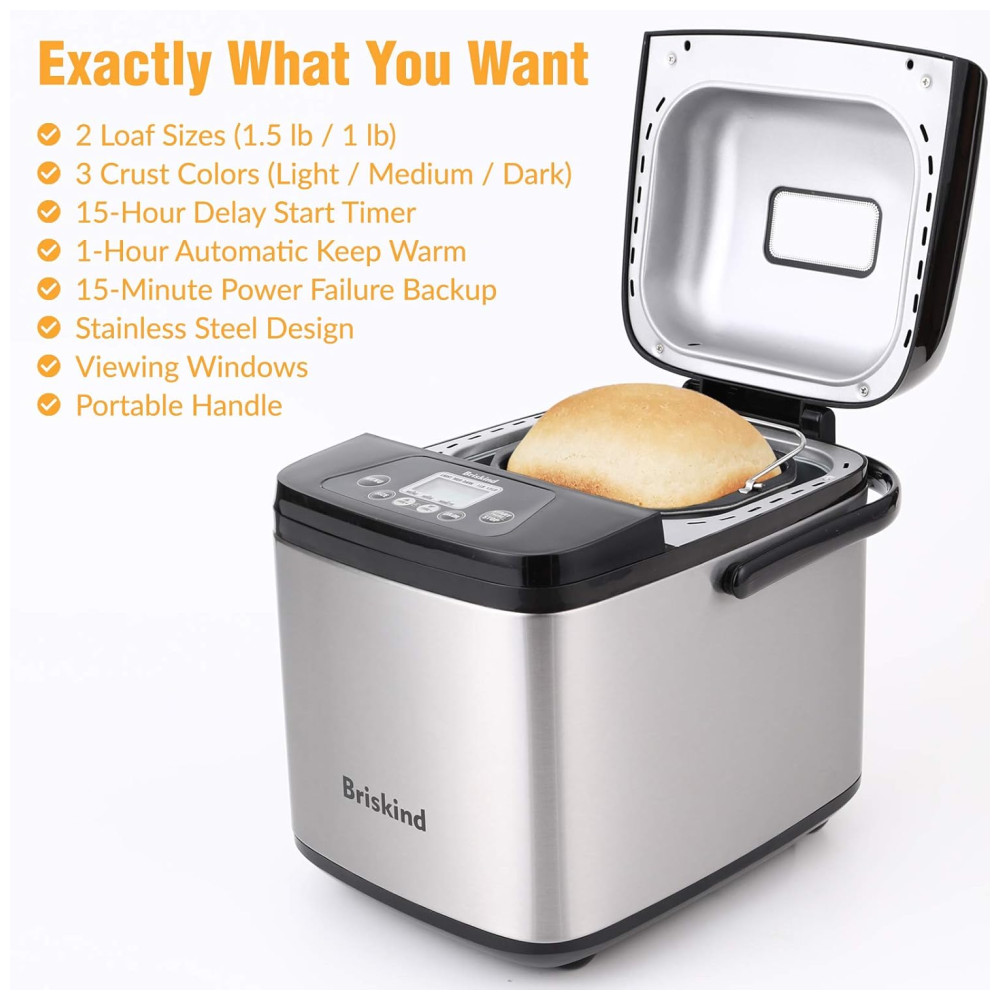 Panificadora Automática 19 em 1 Capacidade 680g Aço Inoxidável 500W 110v BRISKIND BM8605 Prateado