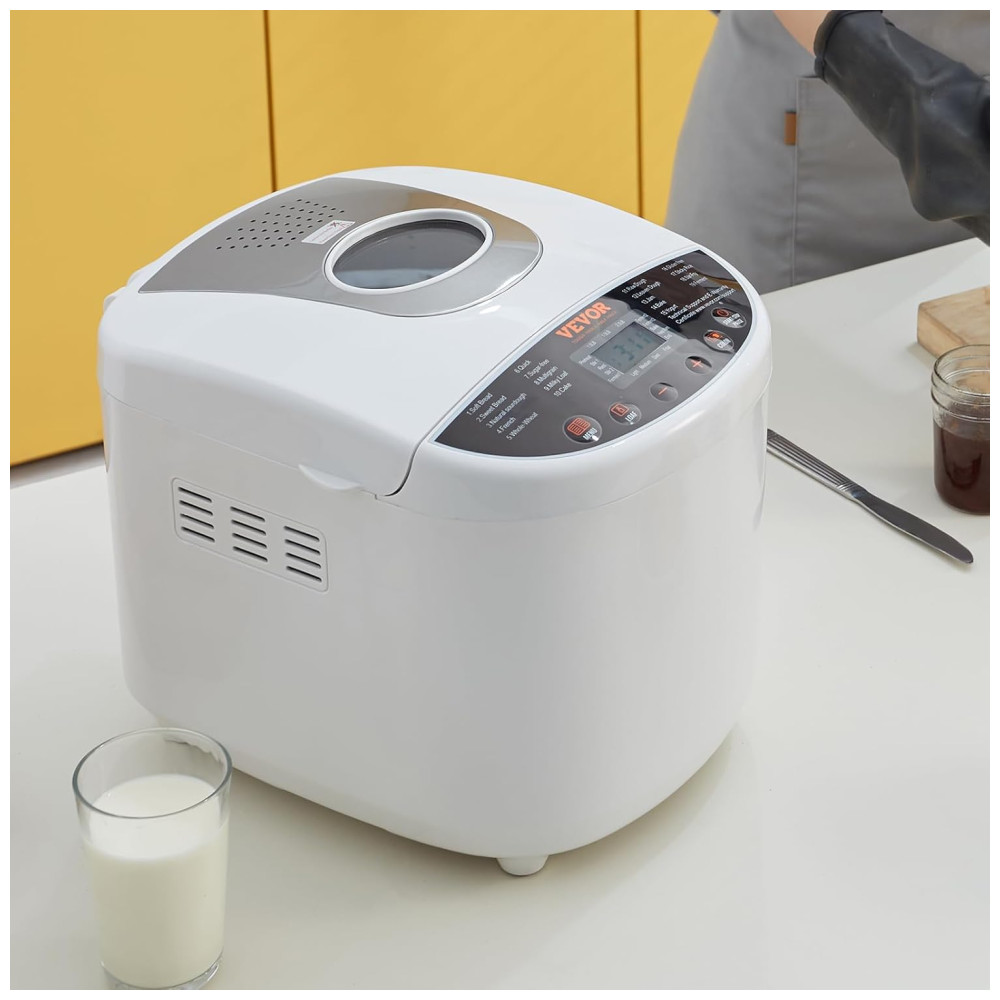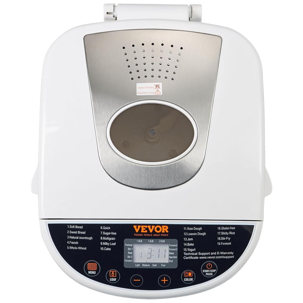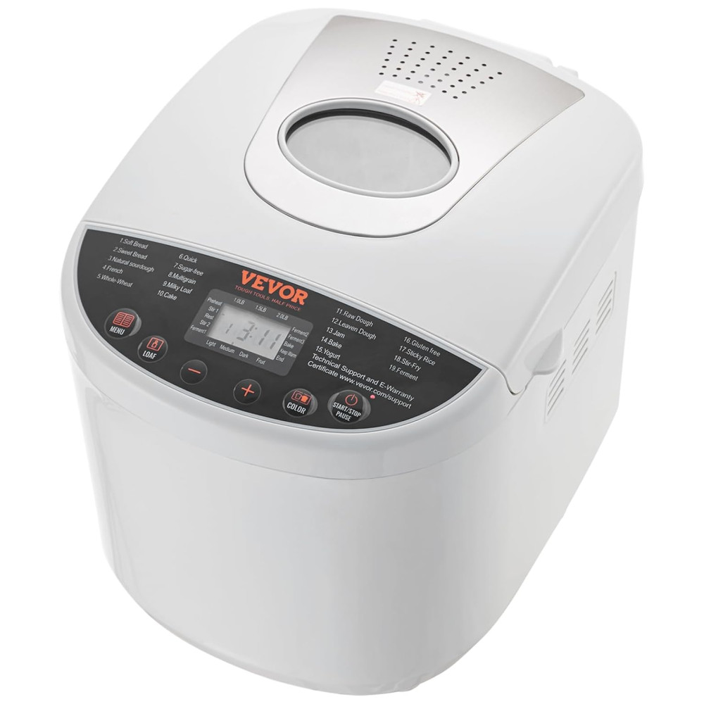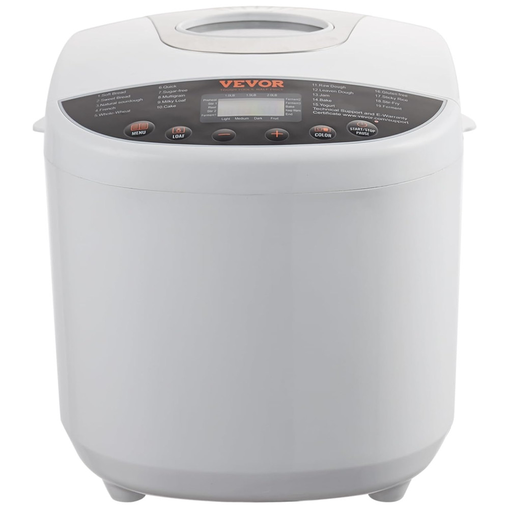 Panificadora Automática 19 em 1 com Capacidade de 910g 3 Tamanhos de Pão e 3 Cores de Crosta 110V 650W VEVOR Branca