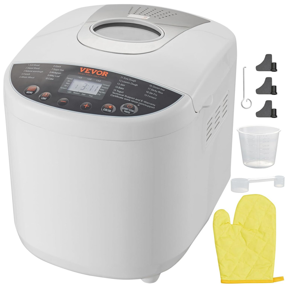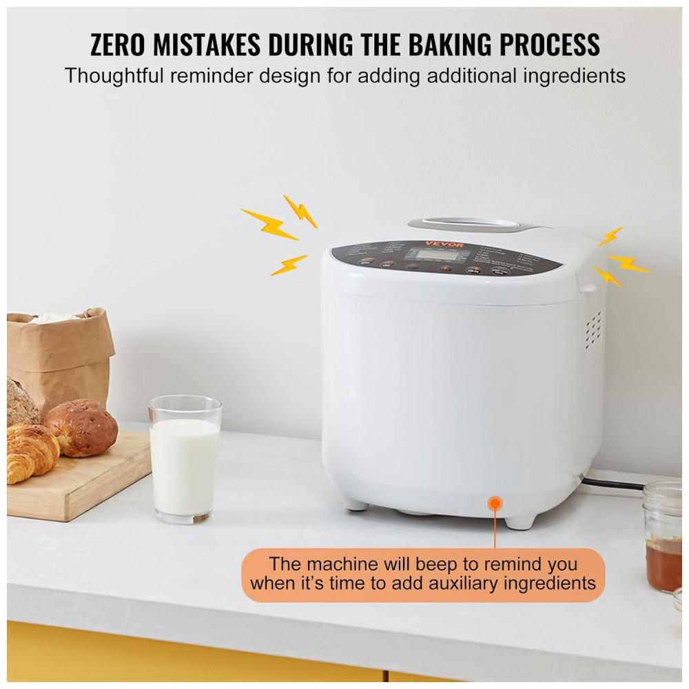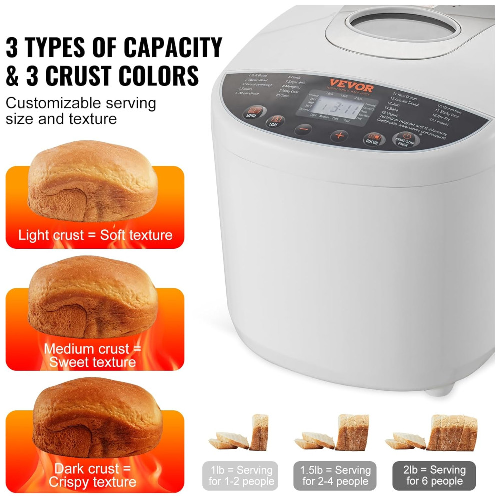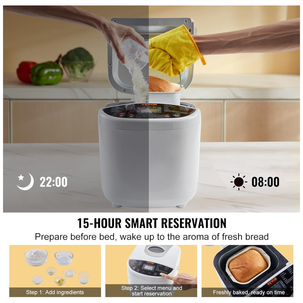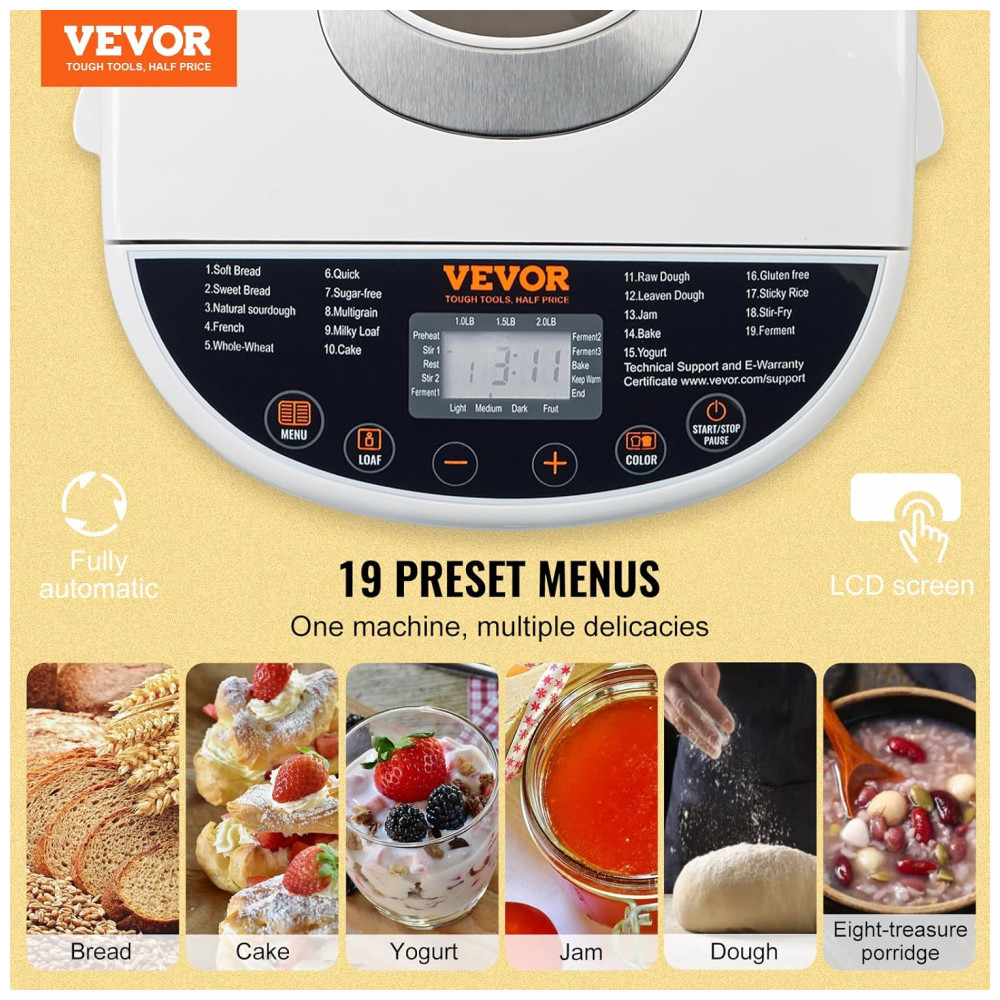 Panificadora Automática 19 em 1 com Capacidade de 910g 3 Tamanhos de Pão e 3 Cores de Crosta 110V 650W VEVOR Branca