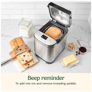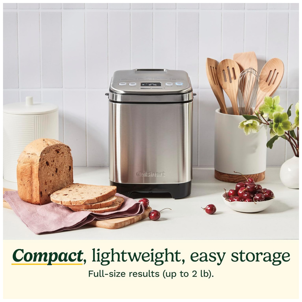 Todo mundo adora pão caseiro, mas nem todo mundo tem tempo para prepará lo. Deixe o Cuisinart fazer isso por você nossa máquina de fazer pão automática, versátil e compacta, oferece uma variedade de cores de crosta e tamanhos de pão, bem como 12 opções de menu pré programadas. As receitas infalíveis incluem tudo, desde pães artesanais e sem glúten a compotas e molhos. Com um conveniente cronômetro de atraso de 13 horas, aquele maravilhoso aroma de pão recém assado pode estar esperando por você quando você acordar. Características Máquina de fazer pão vertical compacta com exterior de aço inoxidável 12 opções de menu pré programadas totalmente automático fácil de usar 3 tons de crosta claro médio ou escuro Coza até um pão de 0,9kg Janela de visualização para monitorar o processo Espátula removível de amassar e forma de pão Luz interna para verificar o pão enquanto ele assa Visor LED de fácil leitura Opção apenas para assar Início atrasado de 13 horas pão fresco a qualquer hora Backup para falta de energia Sem BPA