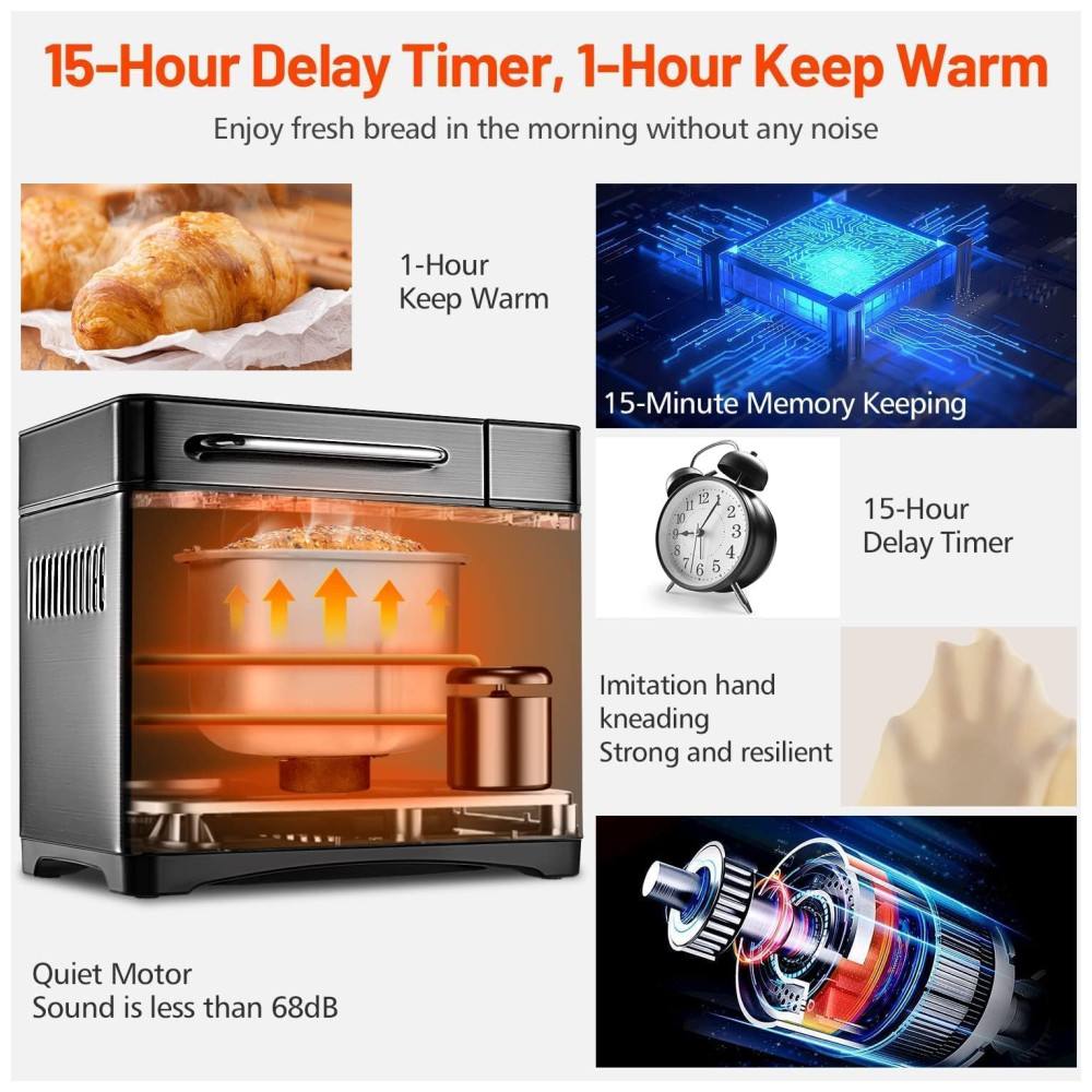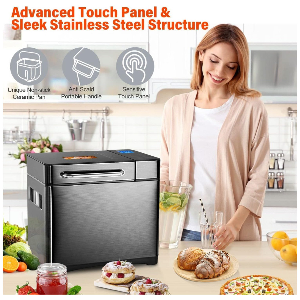 Panificadora Automática Pro Aço Inoxidável Pão XL 17 em 1 3 Tamanhos 3 Cores Pão 110v KBS New Model Bread Machine Preto