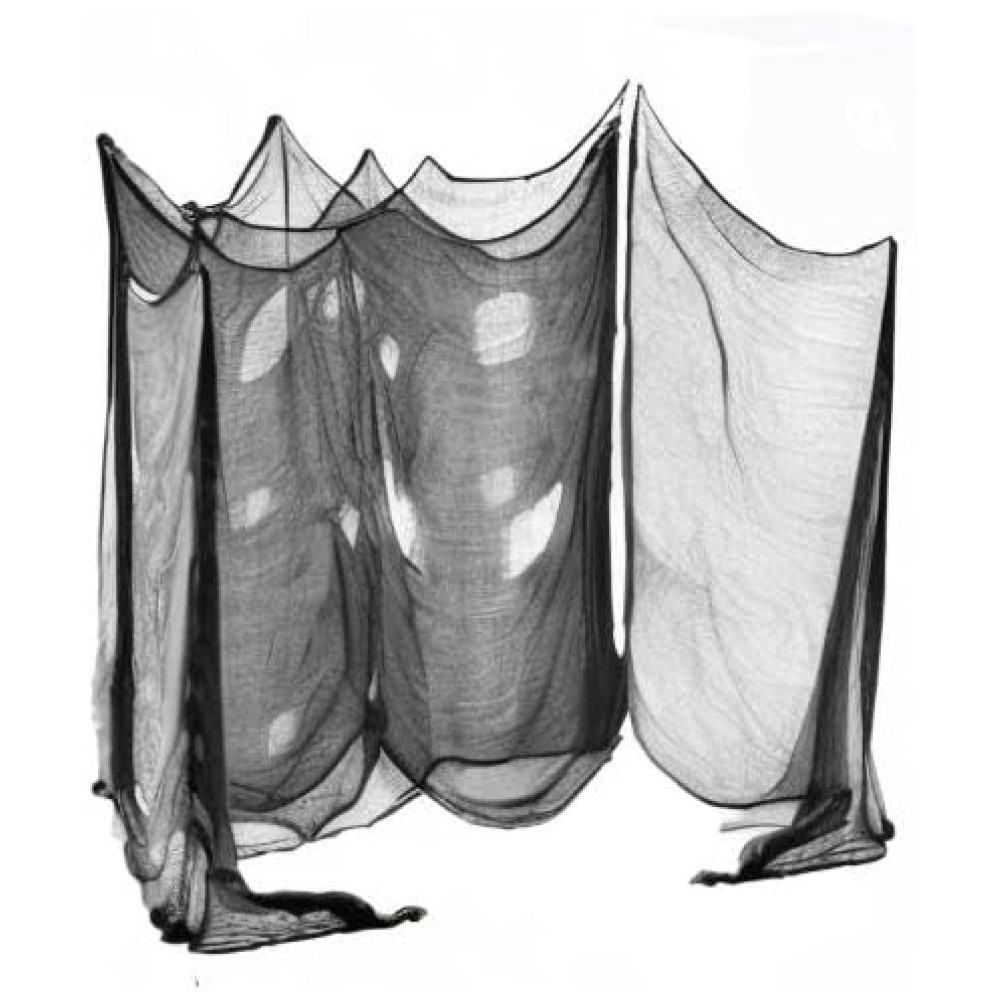 CRIATIVIDADE ALÉM DA IMAGINAÇÃO: Você pode emparelhá lo com algumas aranhas ou outras decorações ou usar uma tesoura para cortar e rasgar buracos no pano. Em seguida, corte o em tiras e pendure as nas luminárias para criar um efeito de iluminação verdadeiramente assustador para criar sua própria cena de horror