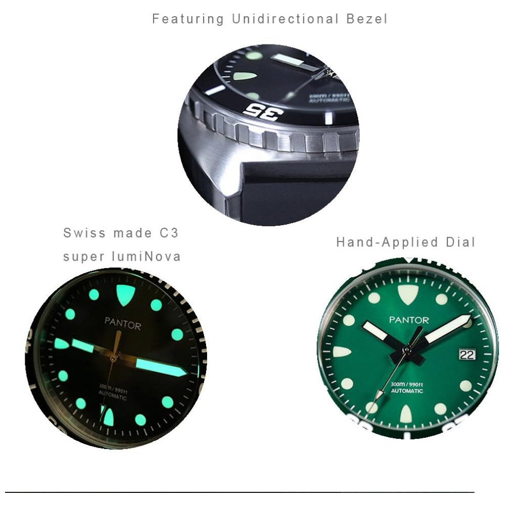 Pantor Sealion Relógio Masculino Analógico Cristal de Safira Aço Inoxidável