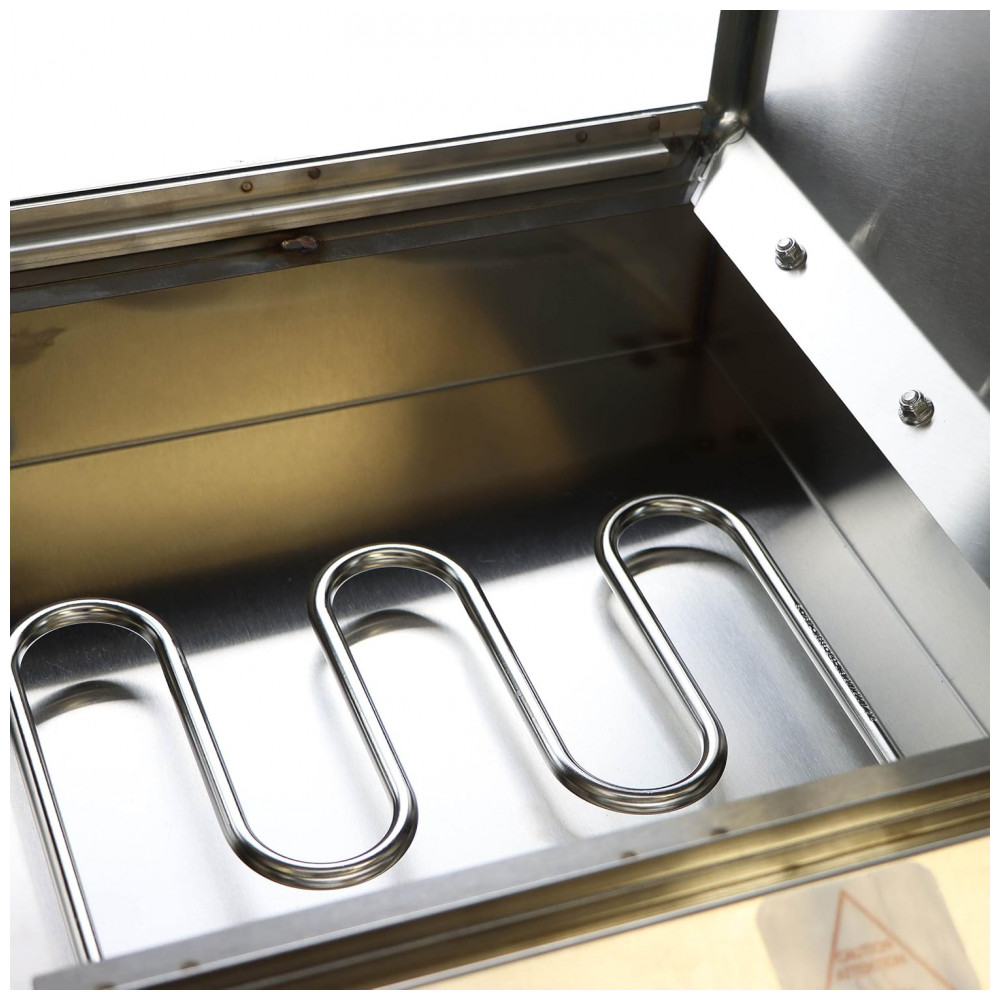 O Dog Hut foi fabricado para estabelecer o padrão de excelência em máquinas de cachorro-quente. Construído com aço inoxidável de calibre 20, o Dog Hut é o mais durável dos vaporizadores e pode acomodar até 200 cachorros-quentes e 42 pães. Bandejas removíveis e portas deslizantes facilitam o acesso aos cachorros-quentes e pães, tornando a limpeza simples. Seu sistema de aquecimento exclusivo apresenta um elemento de aço inoxidável submersível e desligamento automático em caso de pouca água. O reservatório de água de oito quartos é o maior disponível, com válvula de liberação rápida para evitar queimaduras e derramamentos. Luz indicadora de pouca água e interruptor iluminado, juntamente com um termostato ajustável, são recursos padrão. A bandeja dividida permite acomodar cachorros-quentes e salsichas de qualquer tamanho, permitindo cozinhar e vender diferentes tamanhos ao mesmo tempo. As bandejas e portas são seguras para lava-louças. O termostato ajustável permite ao operador atender à demanda. Inclui pinças de aço inoxidável. Construção pesada de aço inoxidável de calibre 20, desligamento automático quando a água está baixa, capacidade para 200 cachorros ou salsichas e 42 pães. Dimensões: 34,9 cm L x 50,8 cm A x 40,6 cm P. Requisitos elétricos: 110 Volts, 10 Ampères.
