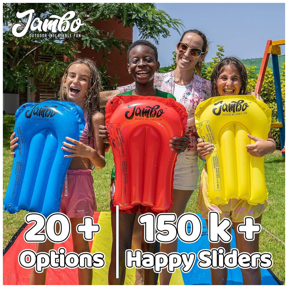 E o melhor de tudo é que você não precisa gastar dinheiro extra para obter os acessórios de slide que deseja, pois o escorregador vem com três pranchas de bodyboard para uma experiência de deslizamento ainda mais divertida.