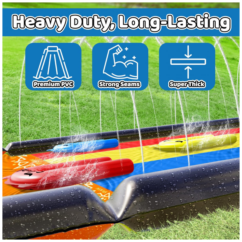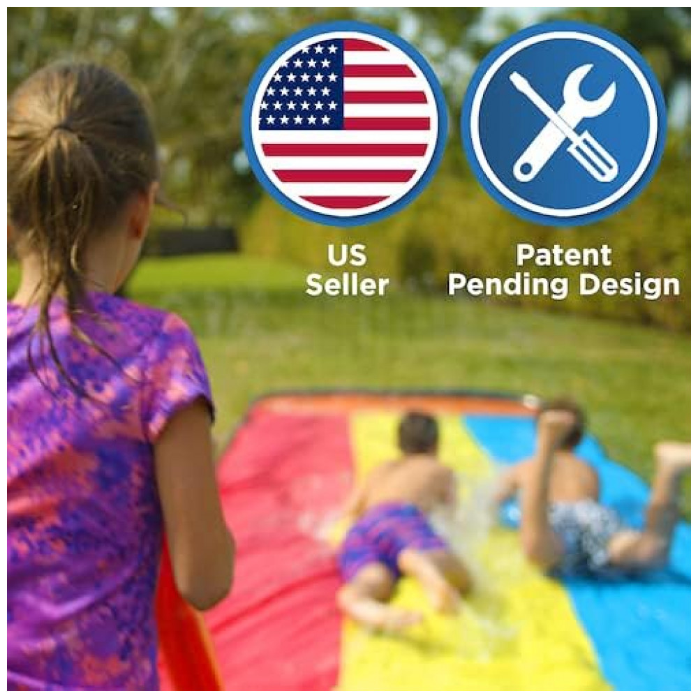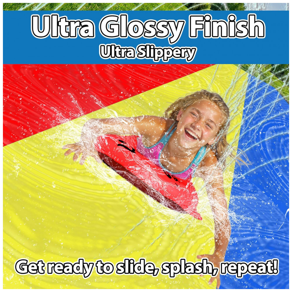 Este incrível brinquedo de quintal é o sistema de sprinkler perfeito para proporcionar uma diversão aquática sem igual Com um projeto patenteado, o escorregador conta com orifícios de aspersão em ambos os lados que garantem máxima umidade para uma experiência de deslizamento emocionante. Além disso, o amplo toboágua de três pistas oferece às crianças a chance de mergulhar e deslizar ao mesmo tempo, proporcionando horas e horas de diversão aquática para até três crianças deslizarem ao mesmo tempo.