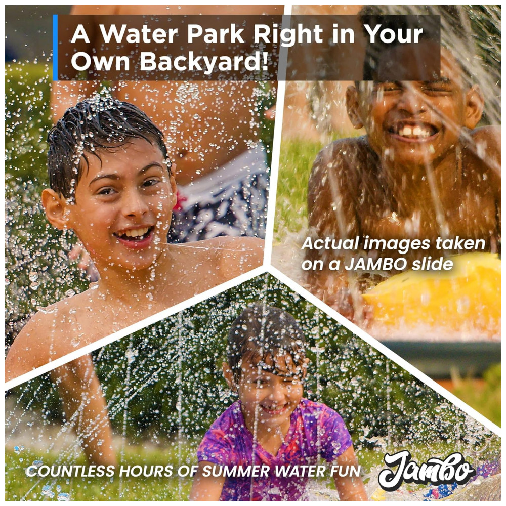 Parque Aquático Inflável 48 Metros com 3 Bodyboards e Sistema de Aspersão de Água de 3 Vias para Crianças Jambo Colorido