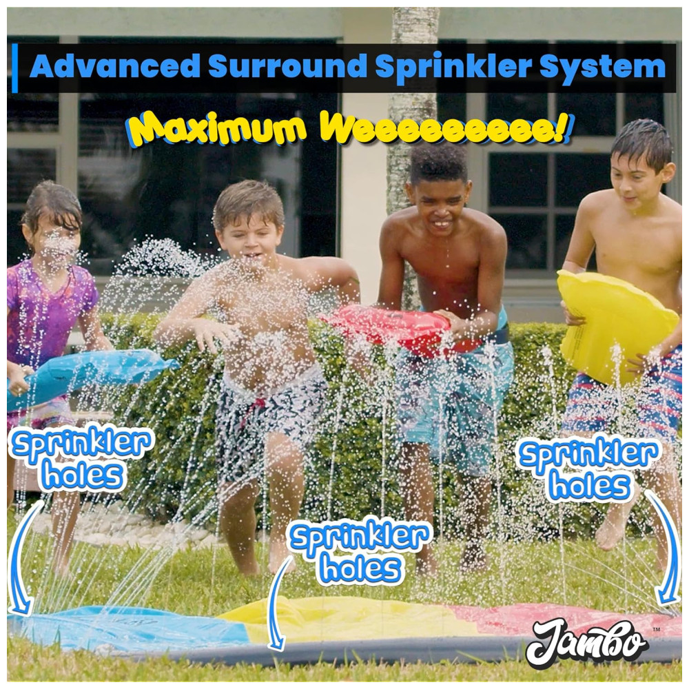 Este incrível brinquedo de quintal é o JAMBO Slip Splash and Slide, um sistema de sprinkler perfeito para proporcionar diversão aquática para crianças e adultos. Com um design patenteado, possui orifícios de aspersão em ambos os lados do slide que foram especialmente projetados para proporcionar máxima umidade e garantir que todos se divirtam ao máximo. O escorregador tem ótima cobertura de água em todo o percurso, permitindo que as crianças deslizem rápido e ansiosas por horas e horas de diversão aquática.