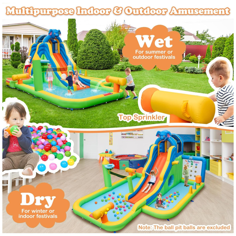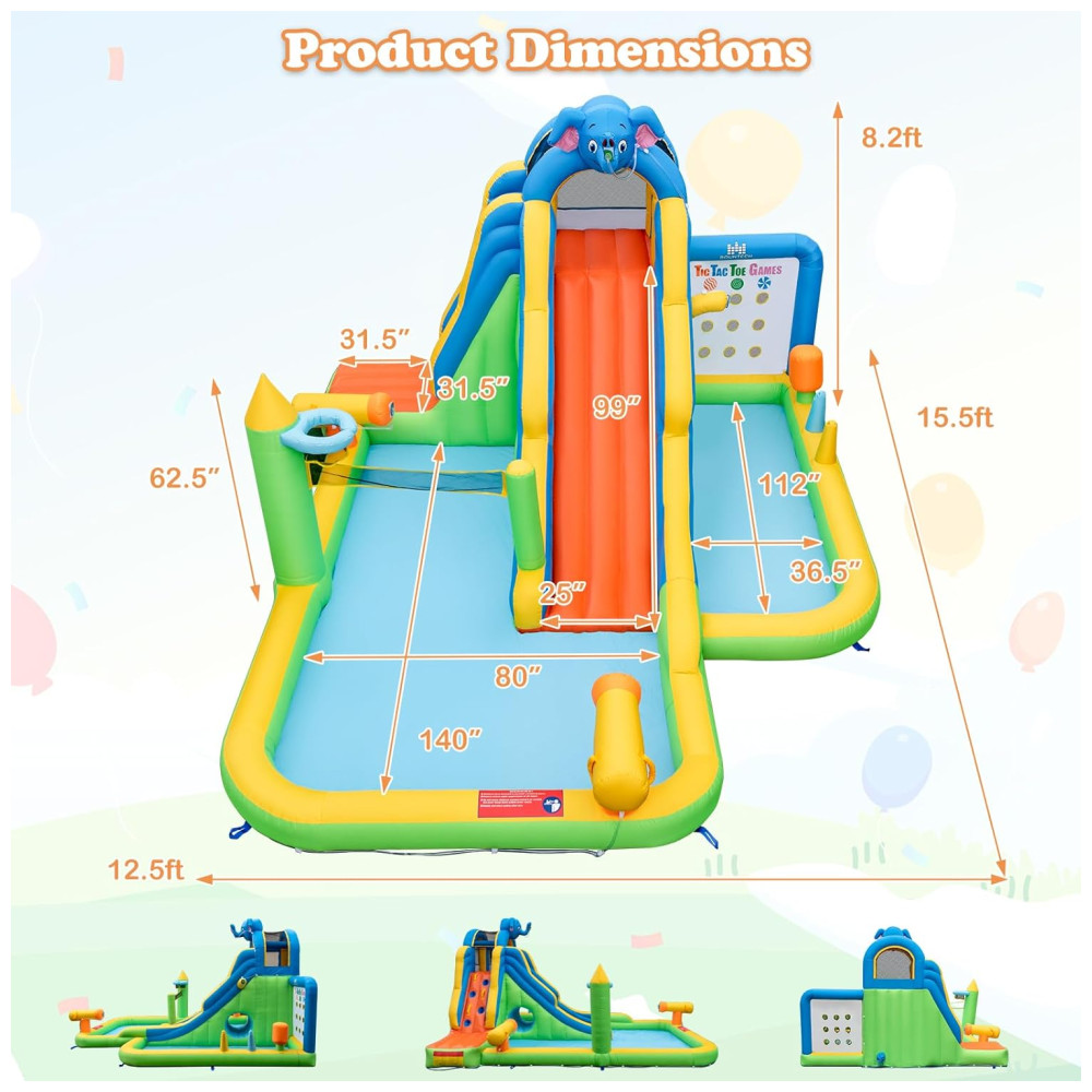 Este toboágua inflável é perfeito para pais e filhos se divertirem juntos. Com funções 9 em 1, ele inclui um longo escorregador de aventura, uma poderosa parede de escalada, uma piscina infantil e uma borda de basquete, além de jogos como Tic Tac Toe em uma grade 3×3. Feito de materiais de tecido Oxford revestidos de PVC extra grosso 500D 420D à prova de perfurações e resistentes ao desgaste, este toboágua é durável e pode suportar peso de até 90,7 quilos.