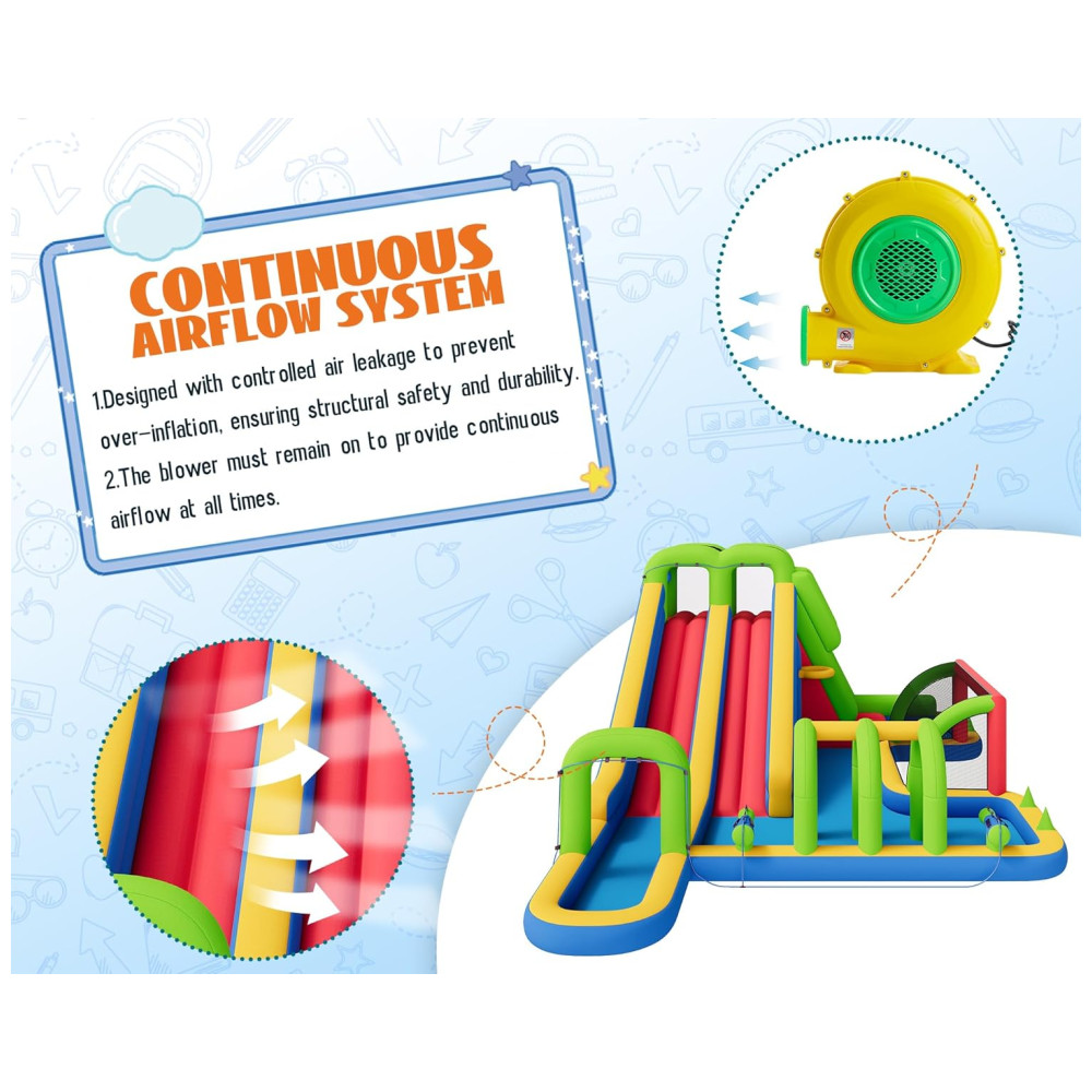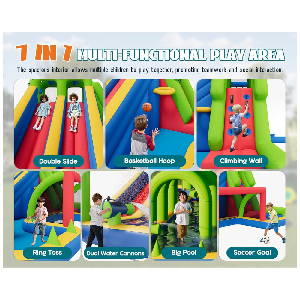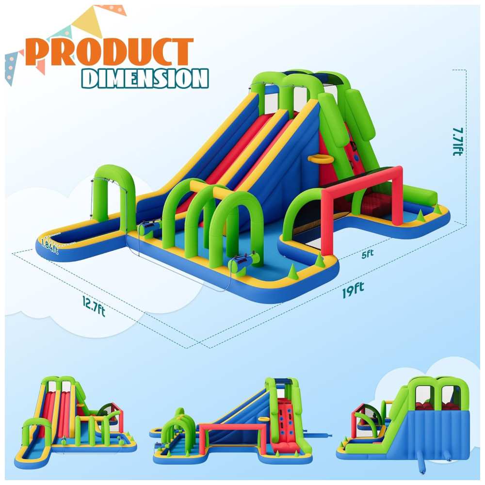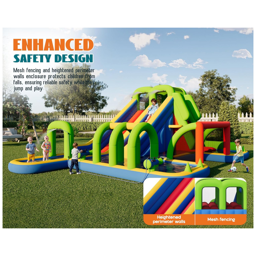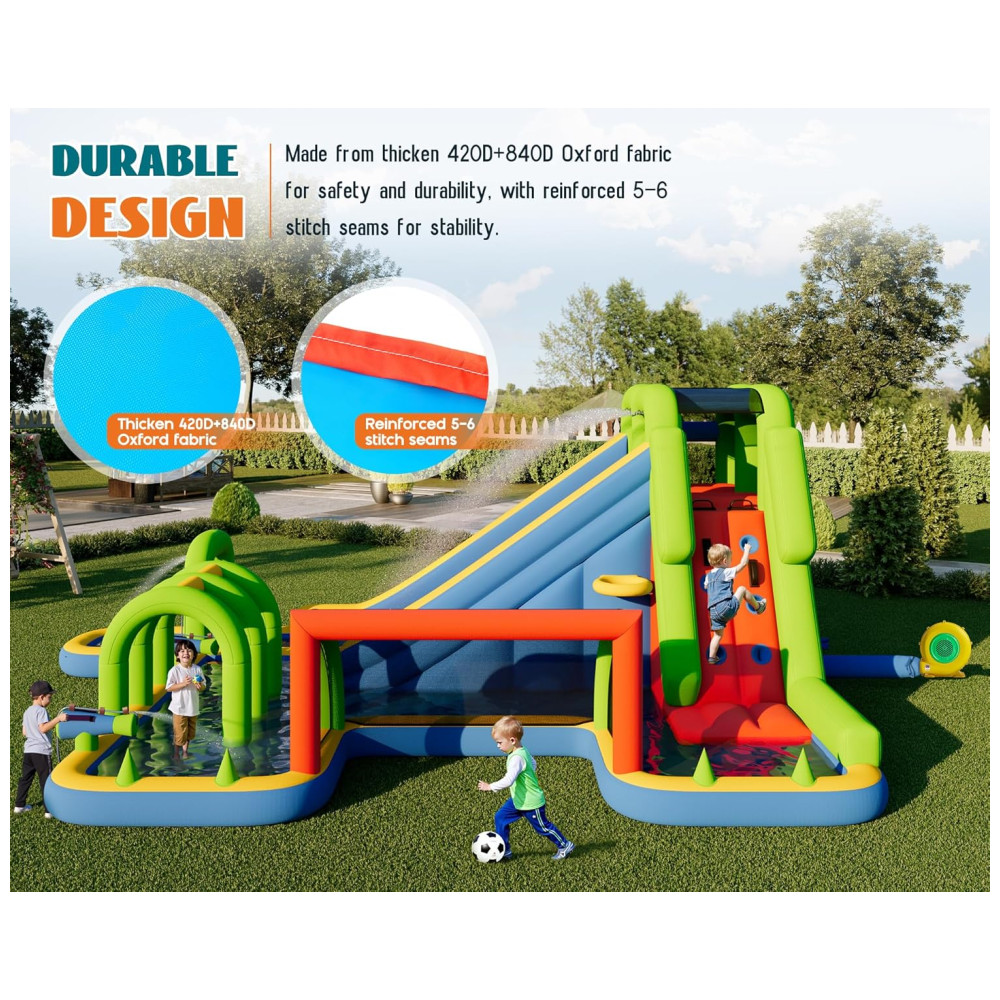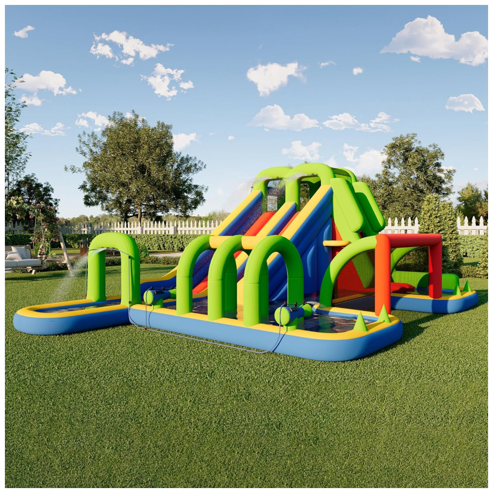 Parque Aquático Inflável Albott com Escorregador e Piscina 58x386x235m Diversão Completa para Crianças 8 em 1 Resistente em Tecido Oxford