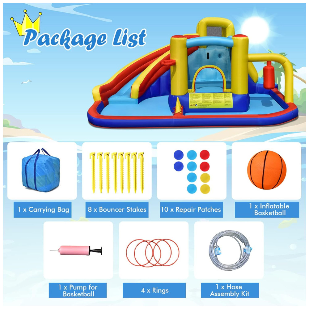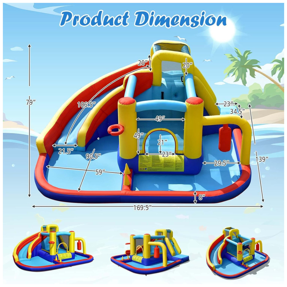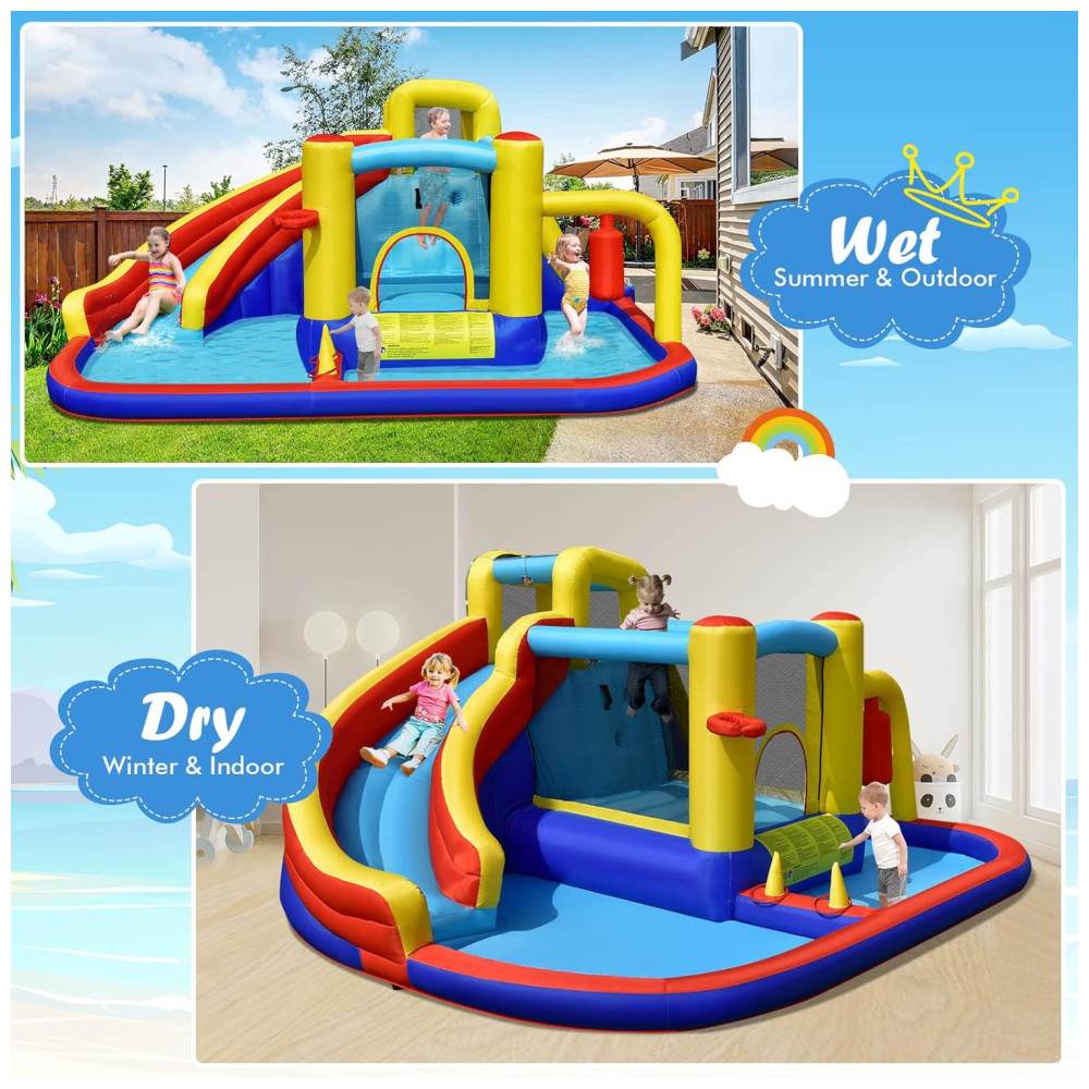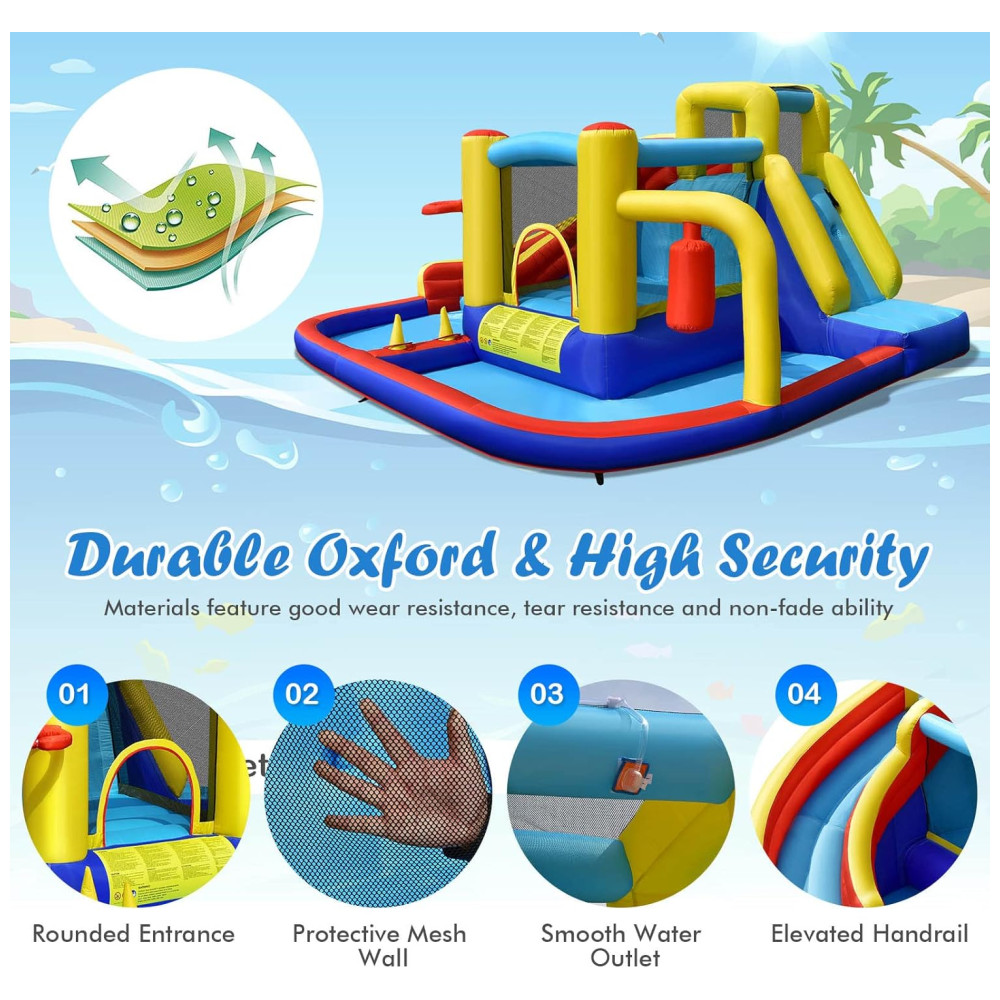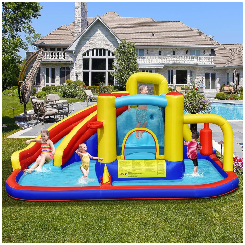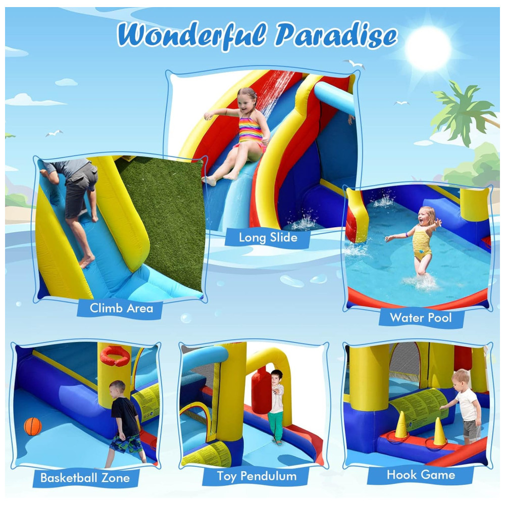 Parque Aquático Inflável até 120 kg com Piscina Infantil Parede de Escalada e Escorregador para Crianças e Adultos BOUNTECH Colorido