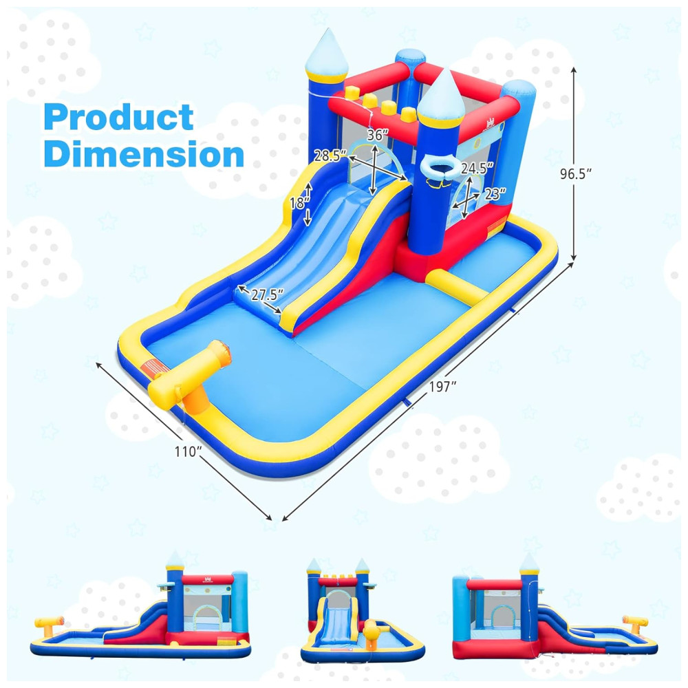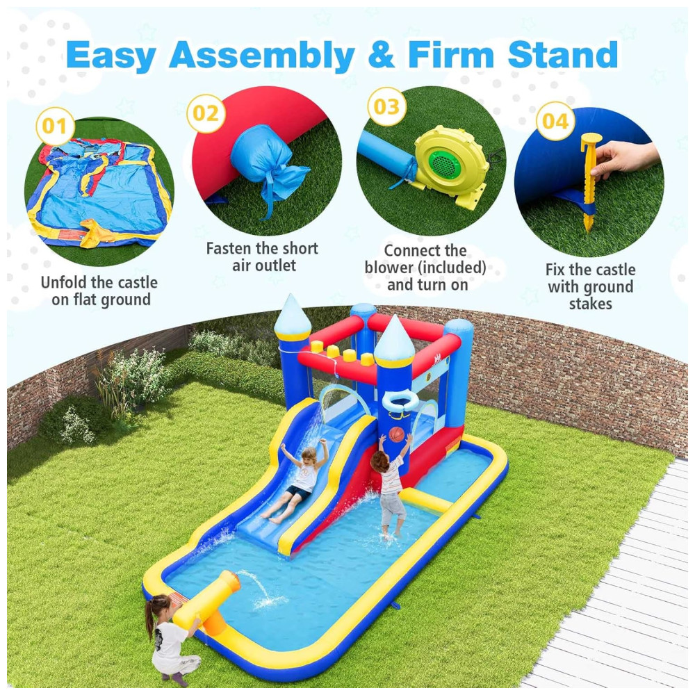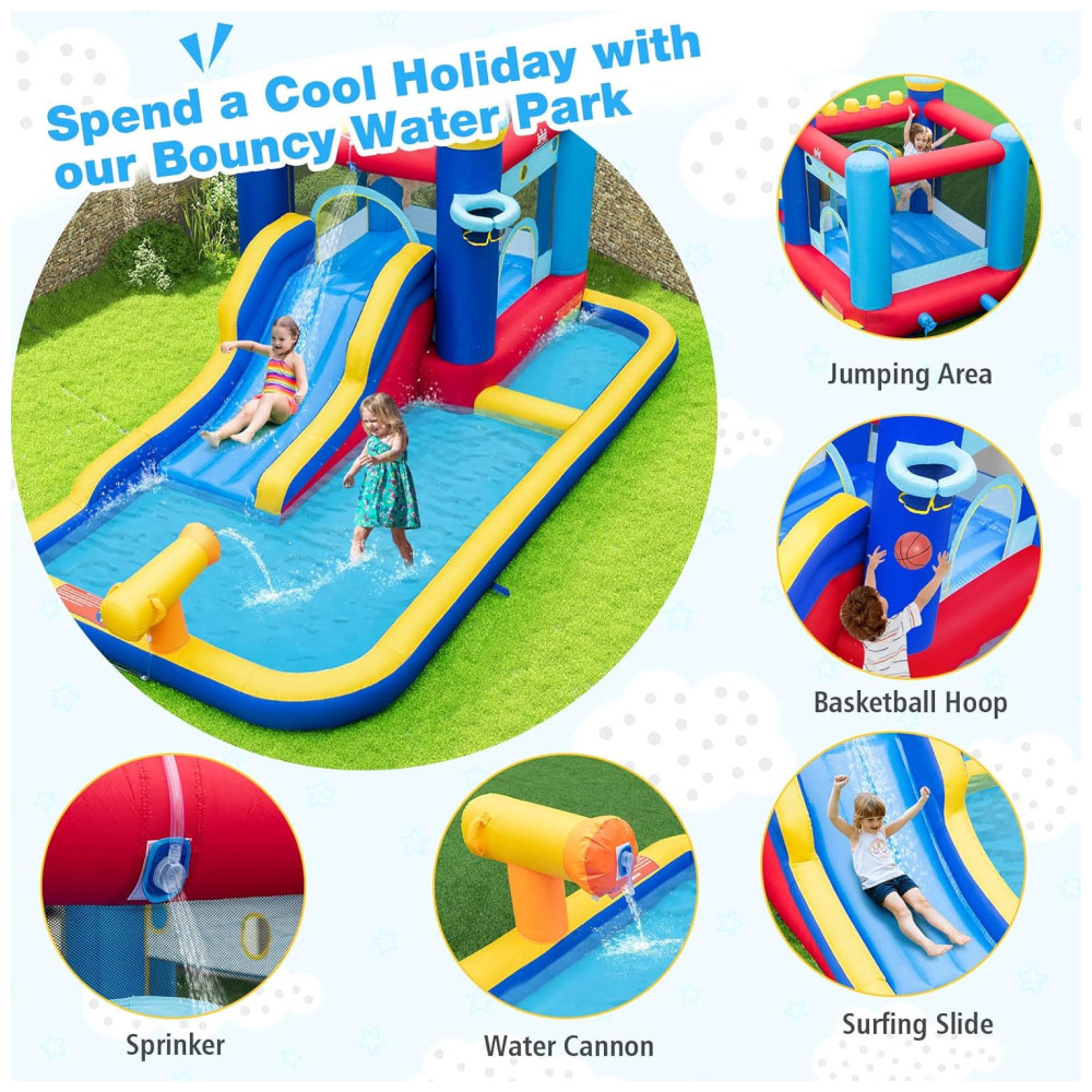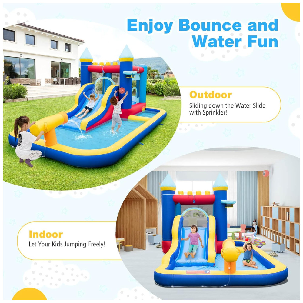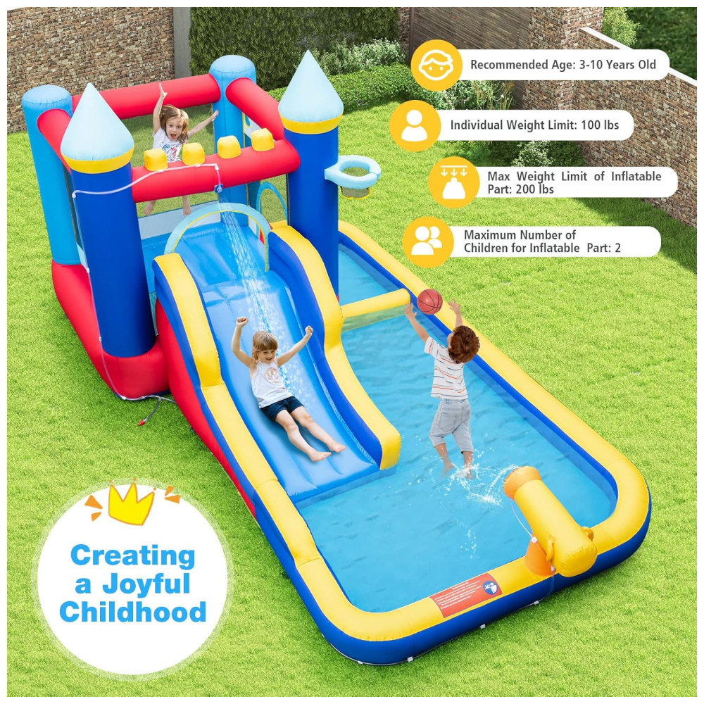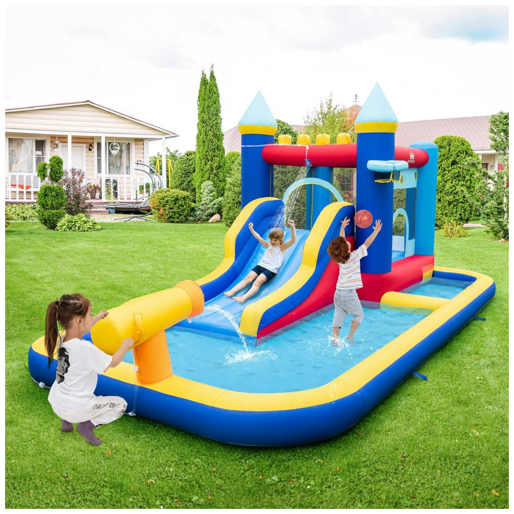 Parque Aquático Inflável BOUNTECH com Escorregador e Piscina de Água Diversão Molhada e Seca para Crianças – 3 em 1: Piscina Basquete e Escalada.