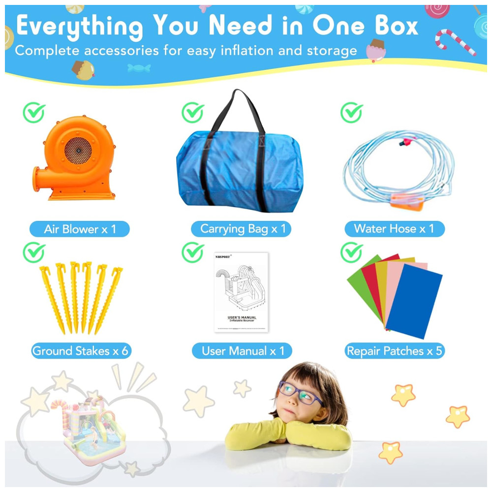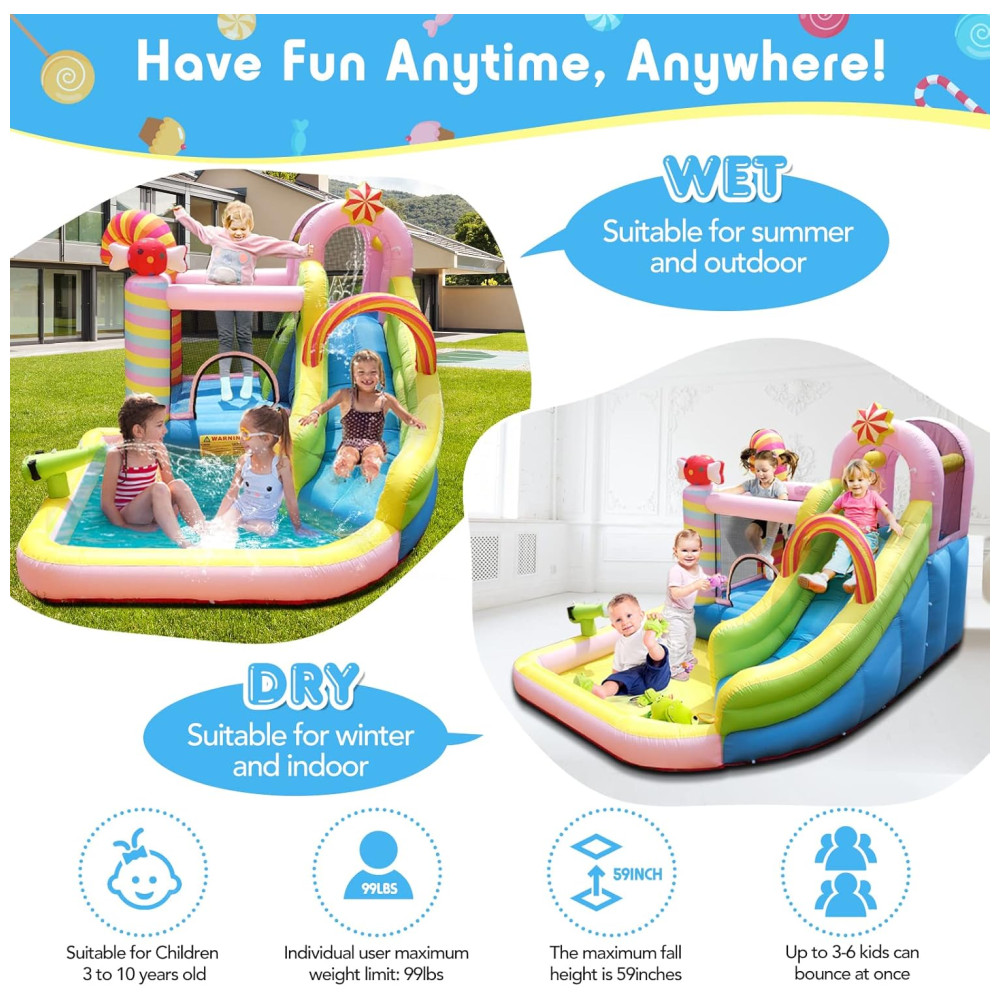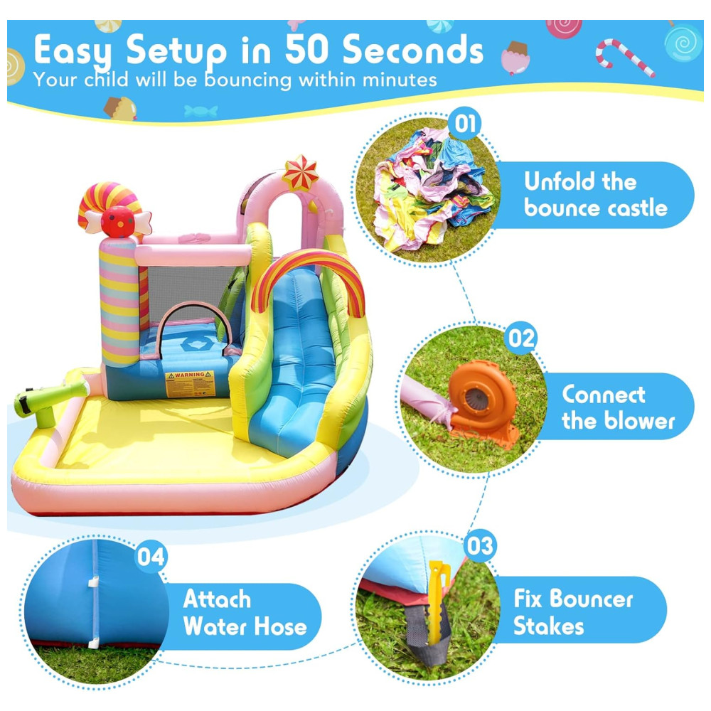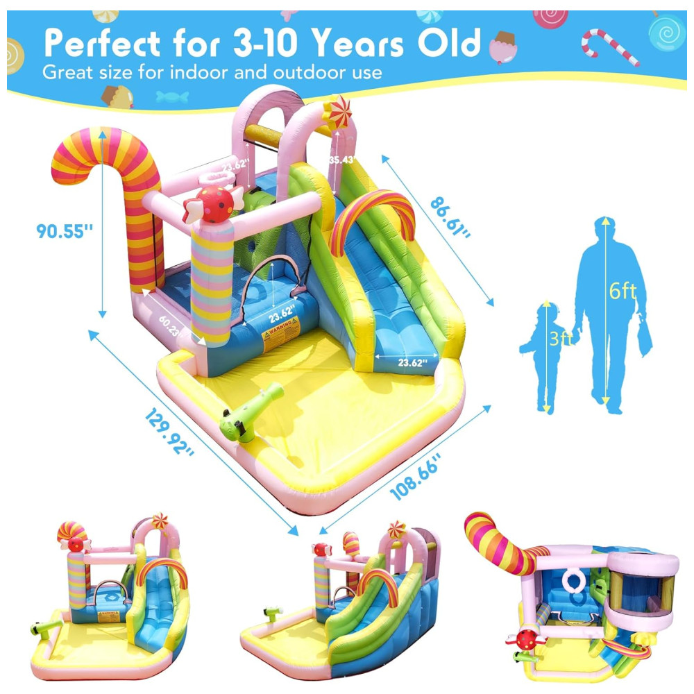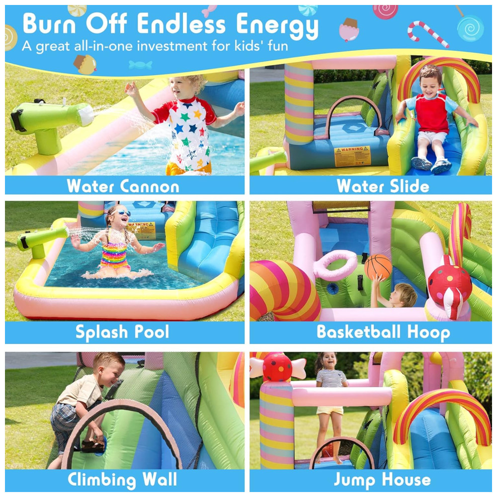 Parque Aquático Inflável Casa de Pula-Pula e Escorregador 6 em 1 Doce Casa de Doces Combo com 450W de Potência Piscina de SplashNBSPORT